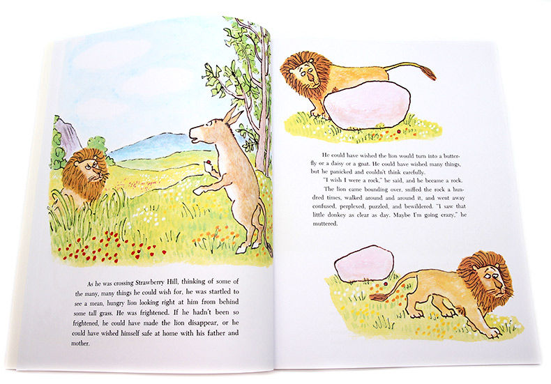 这本书可爱之处在于他摸准了儿童的心思。比如,小朋友都喜欢收集地上的小石头,并把它们视为珍宝。孩子们害怕与父母分离的恐惧,还有他们对突然变身既害怕又渴望的矛盾心理。zui可爱的还在于驴小弟突然遇到了饥饿的狮子,他本可以把狮子变成蝴蝶什么的,可是吓坏了的驴小弟却只想到了把自己变成了石头。驴小弟还能变会来吗?他的爸爸妈妈能找到他吗?作者威廉·史塔克会给你一个意外而又满意的答案。对了,他还是《史莱克》的作者哦。