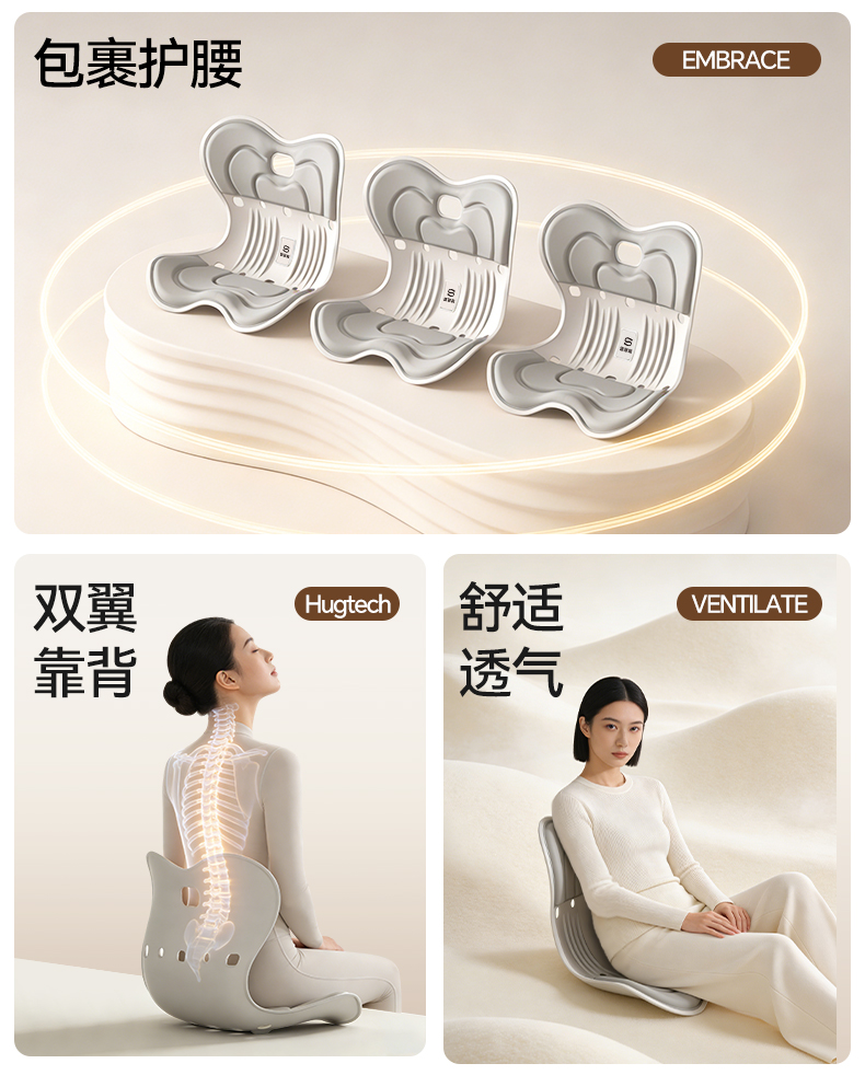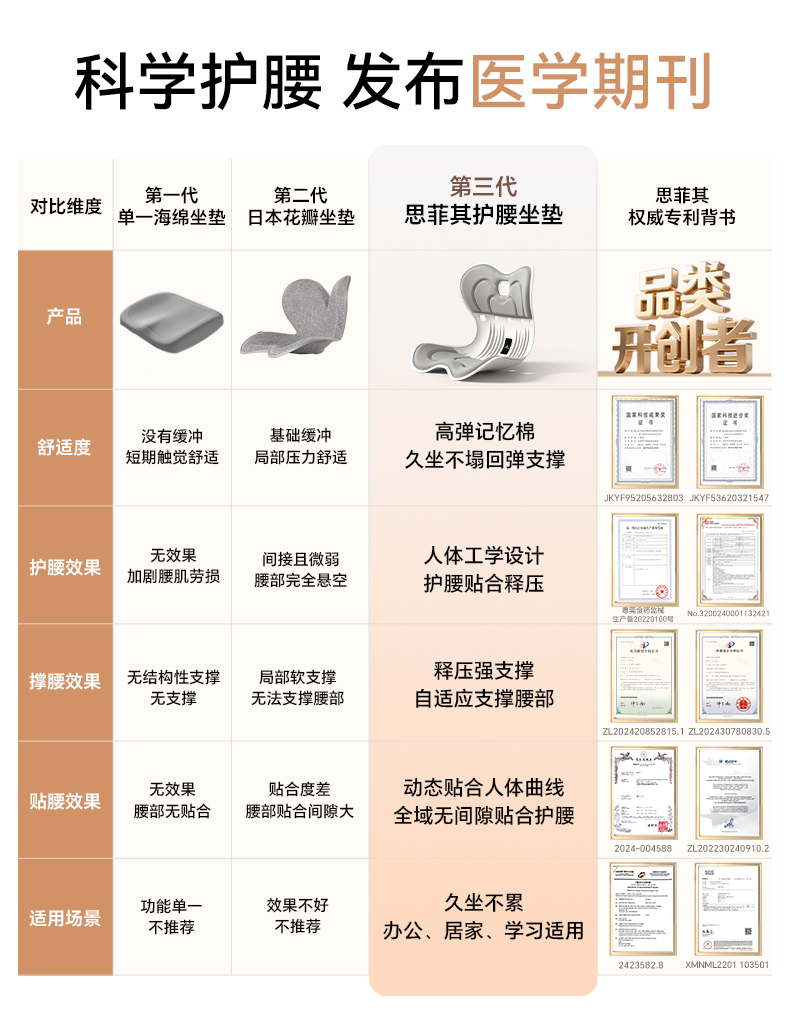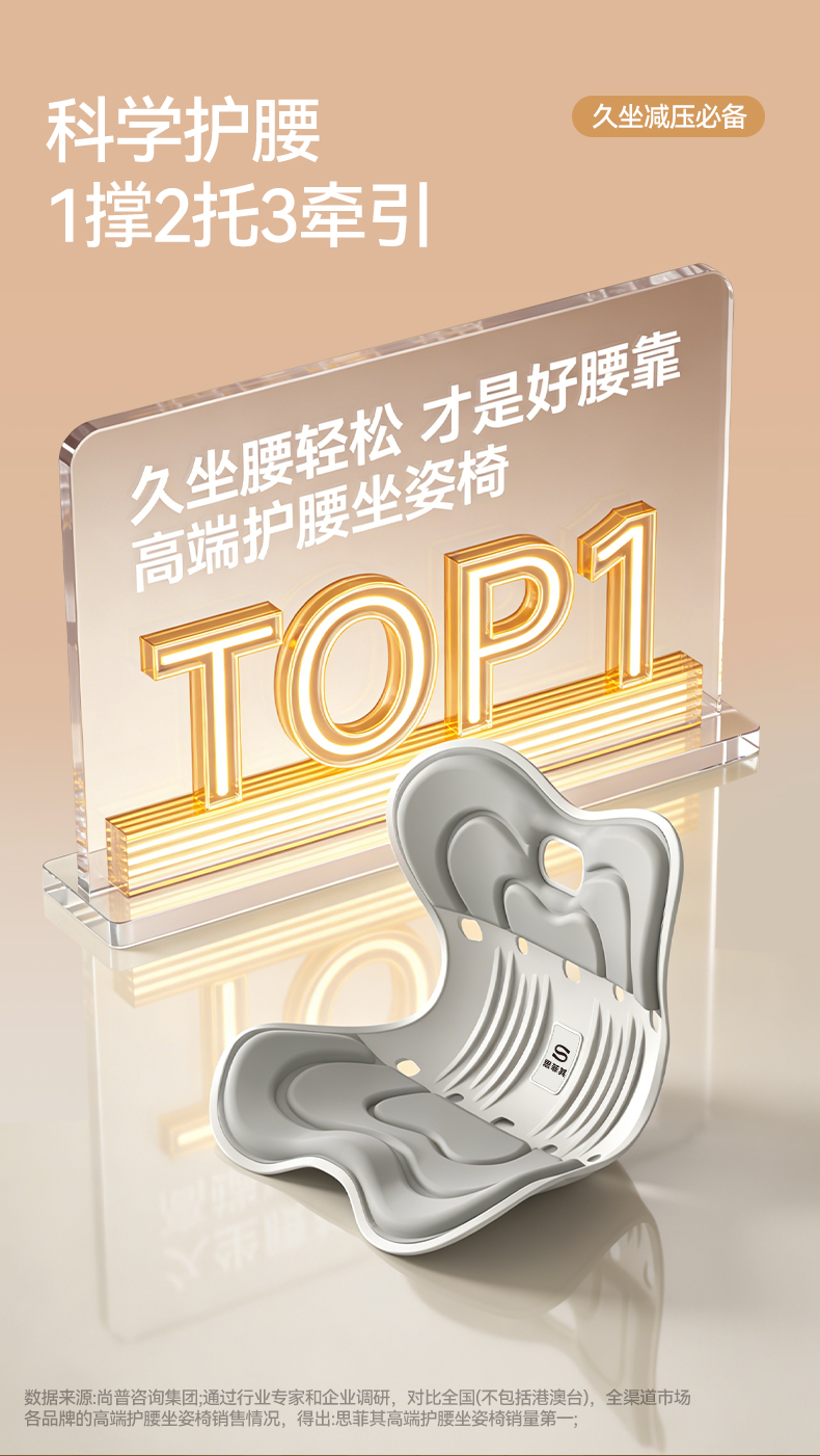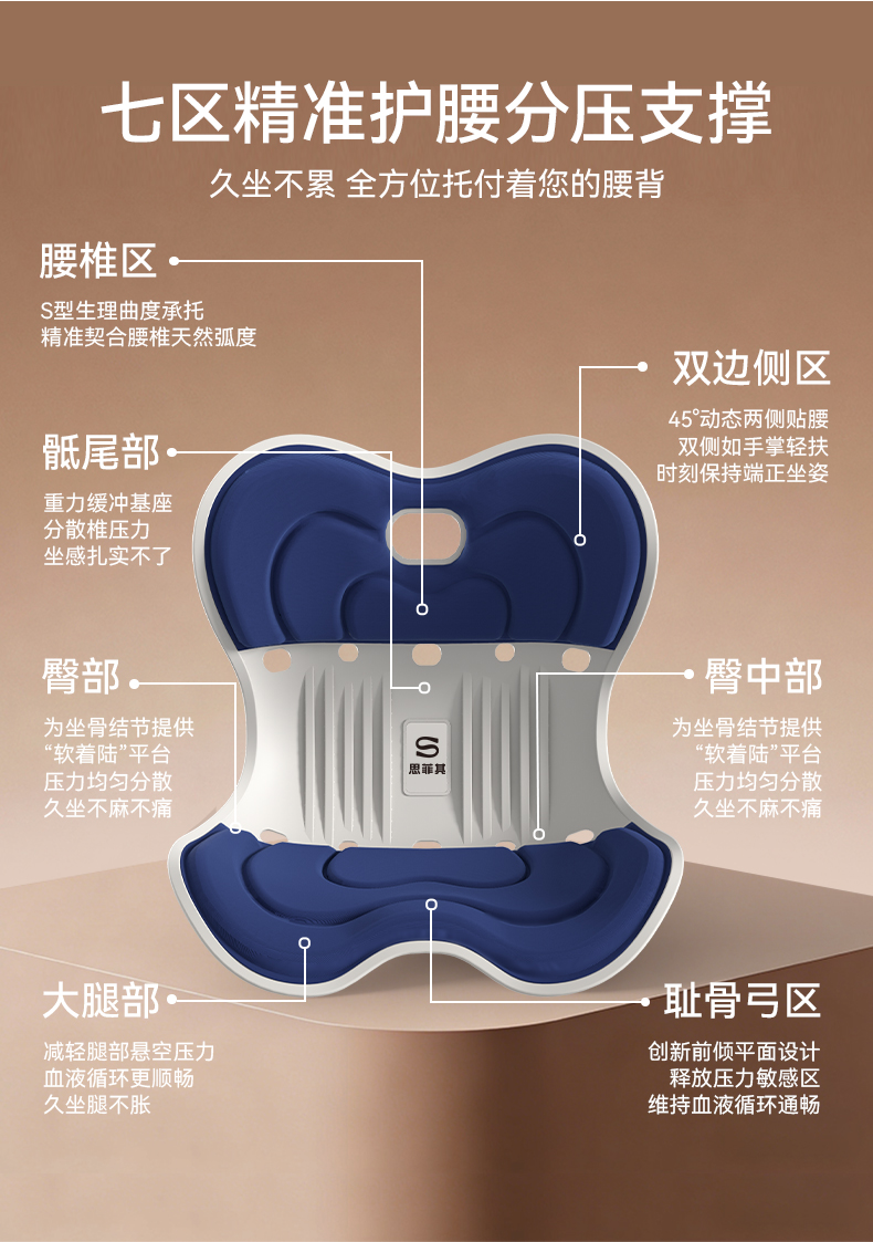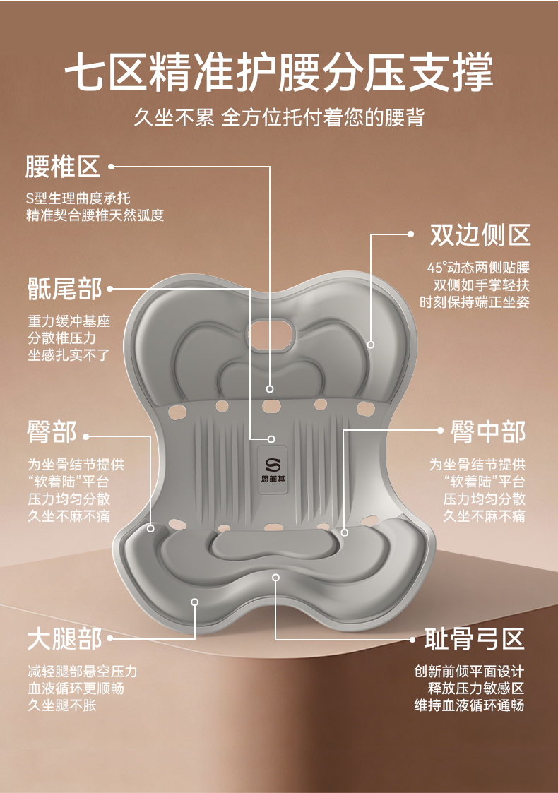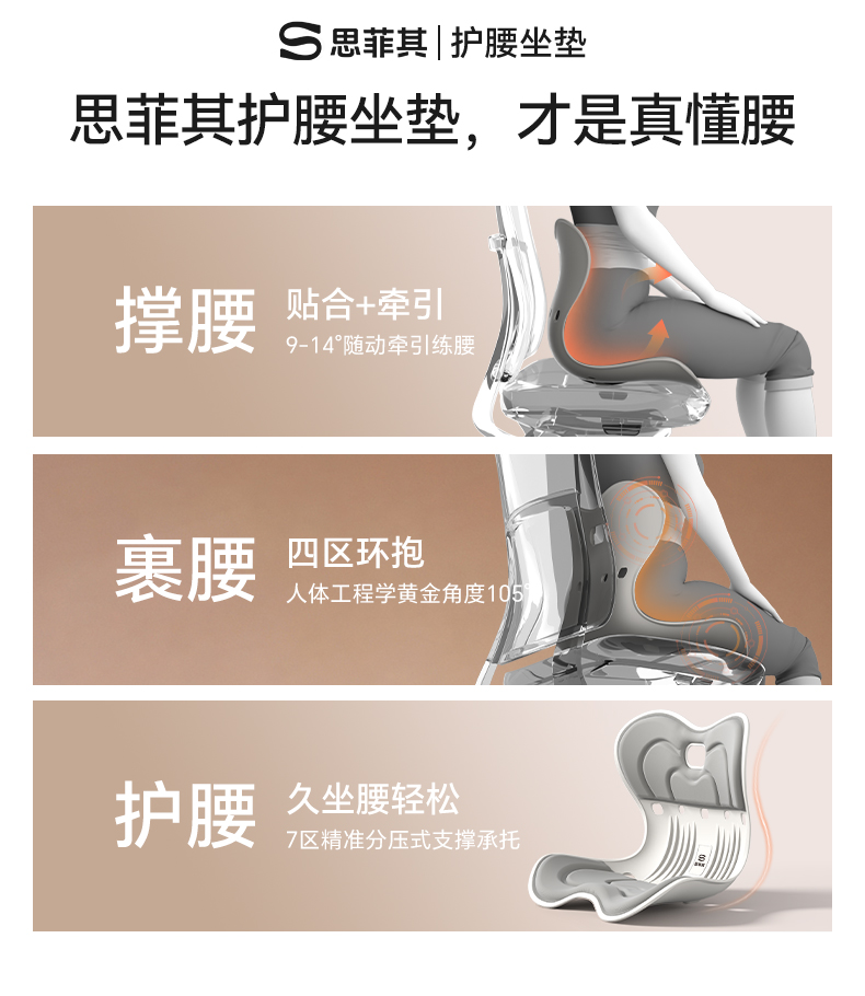 矫正不良坐姿,久坐护腰护脊!『思菲其人体工学护腰靠垫』超羽感包裹技术 SAEA人体工学认证 PICC承保 售后无忧