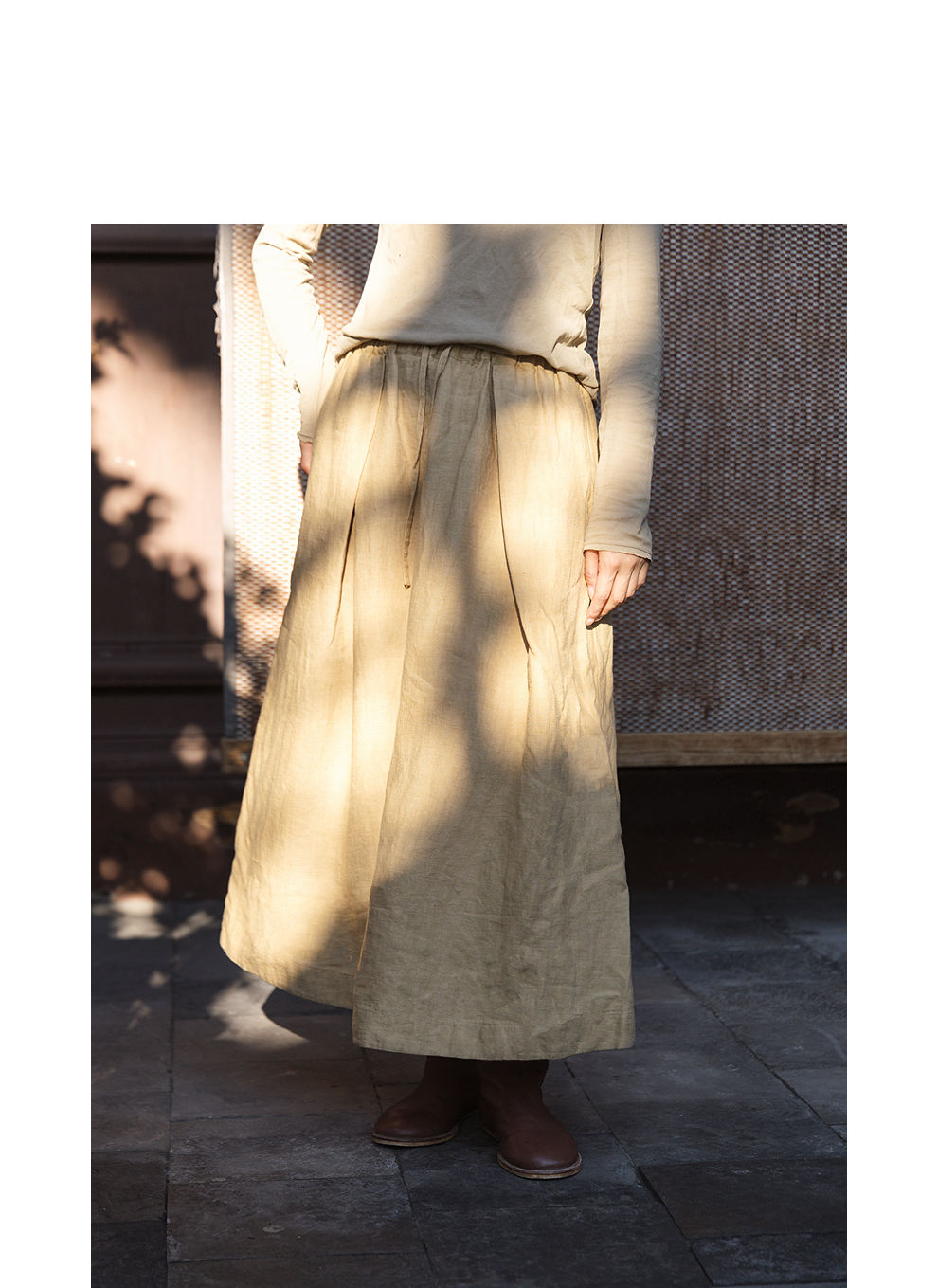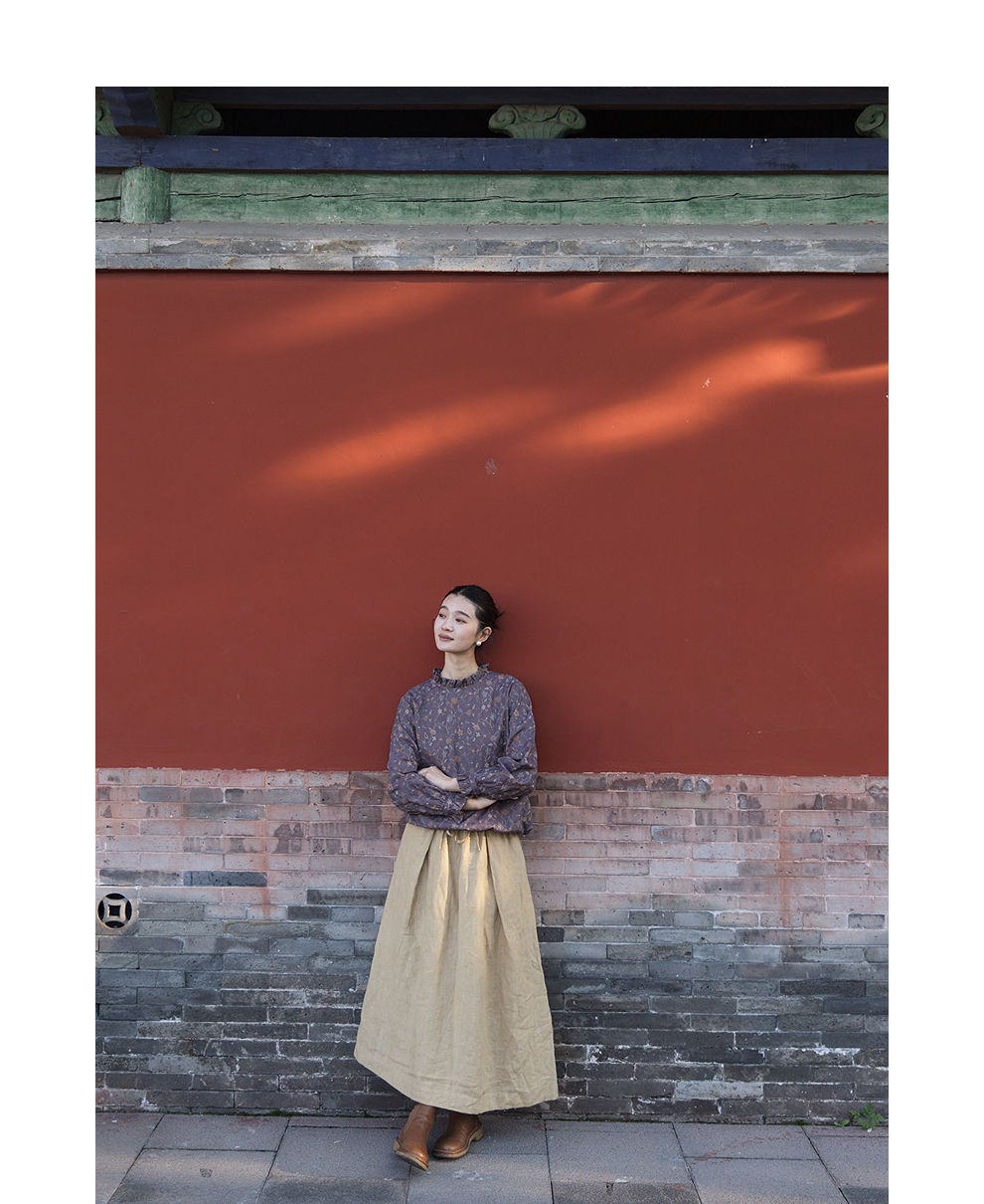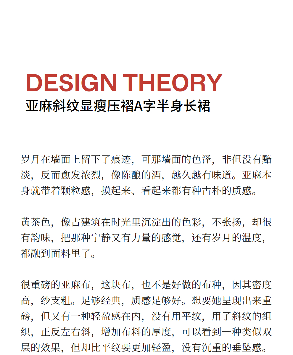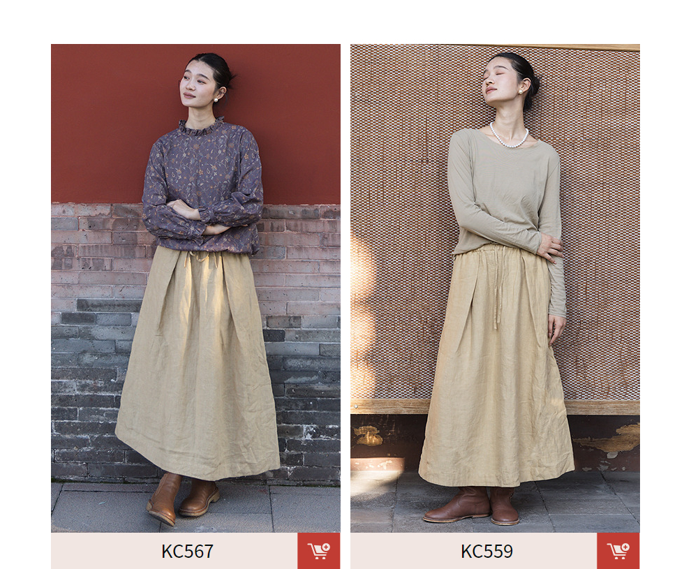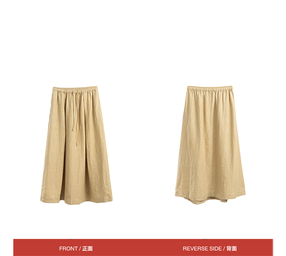 绽放女装562朵/亚麻斜纹显瘦压褶A字裙松紧腰半身长裙女秋半身裙