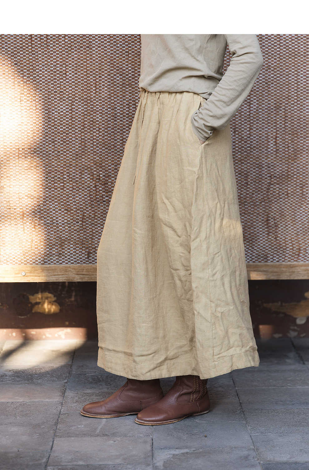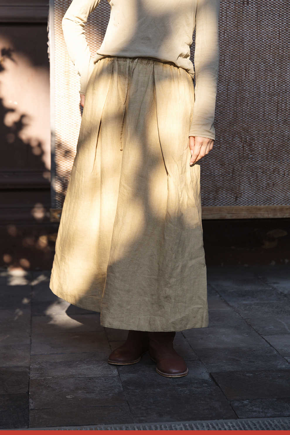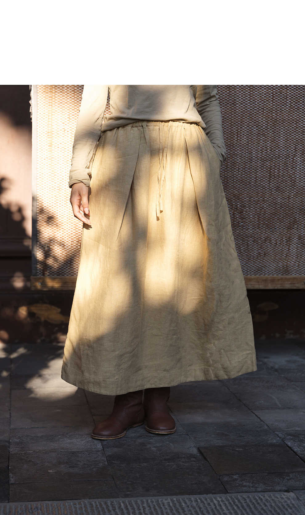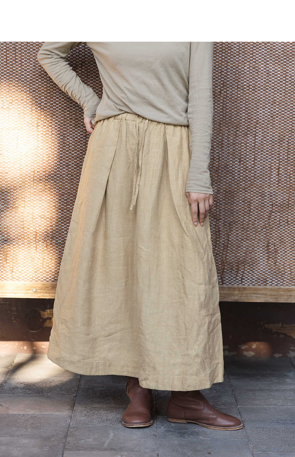 绽放女装562朵/亚麻斜纹显瘦压褶A字裙松紧腰半身长裙女秋半身裙