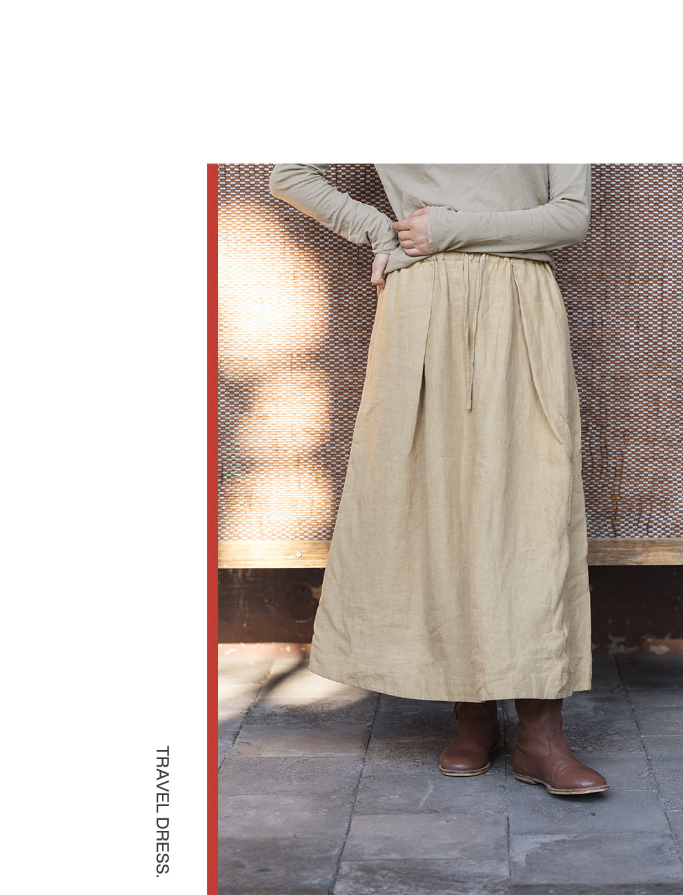 以天然亚麻为载体,融合热烈色彩与自在剪裁为身在城市、心怀远方的女性提供兼具美学与舒适的旅行着装