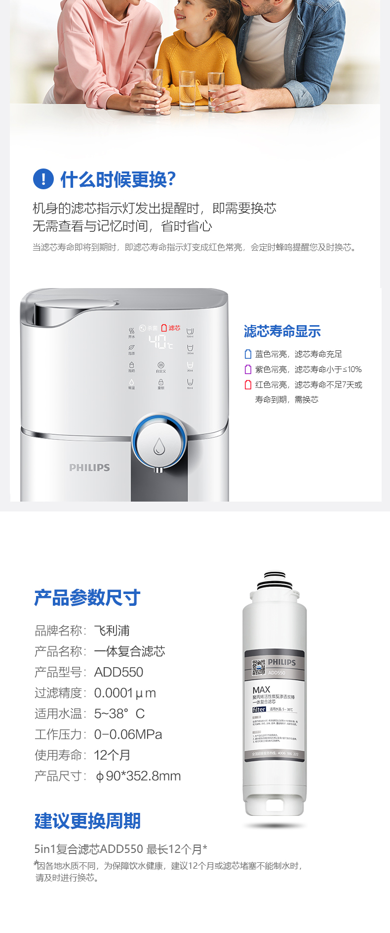 飞利浦(PHILIPS)台式净水器滤芯ADD550 /ADD550R50 适用:ADD6800 ADD6811 ADD6830 ADD6809 ADD6829