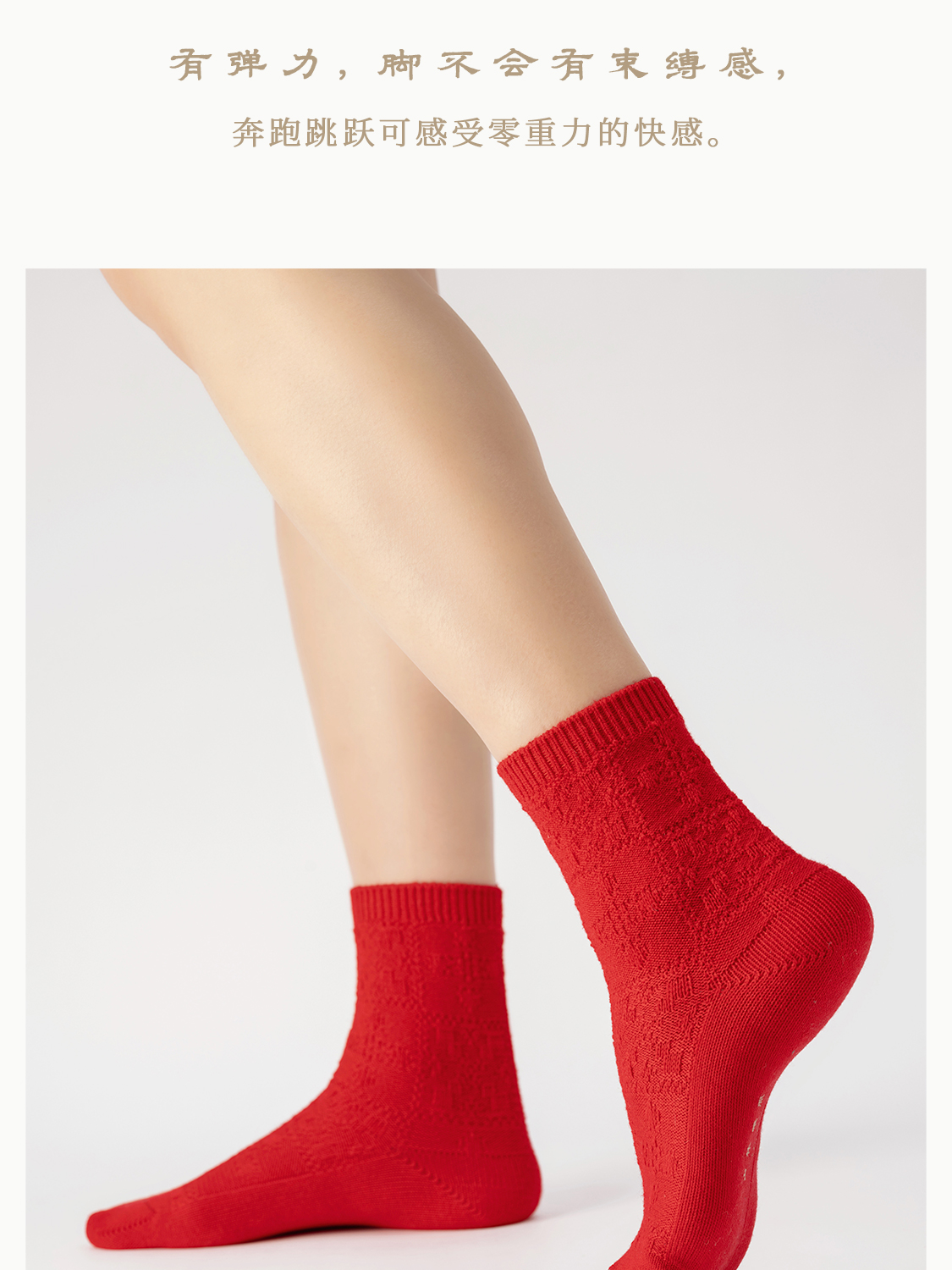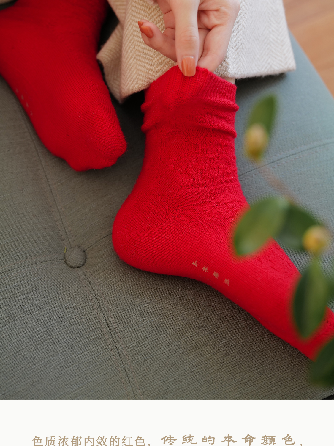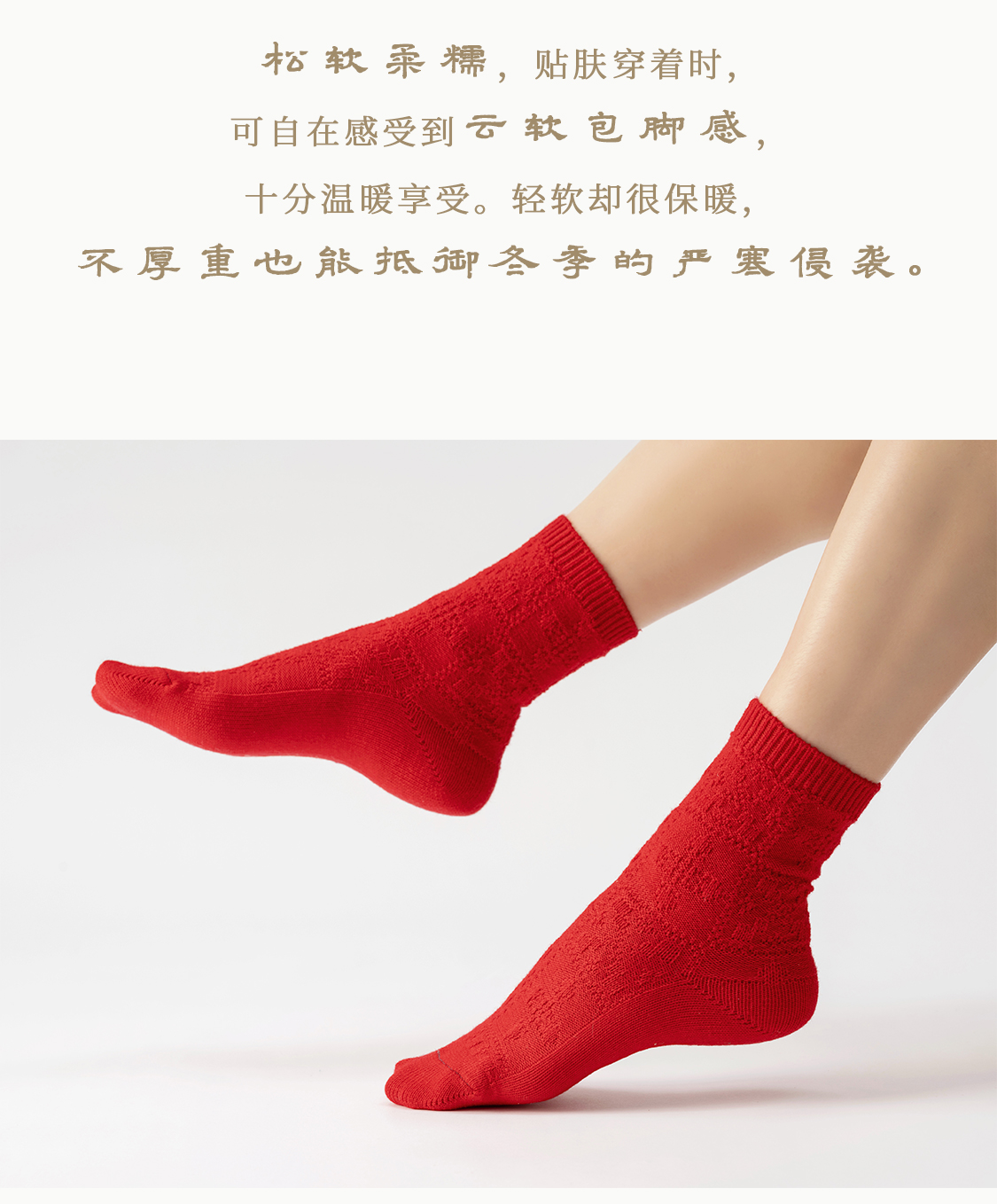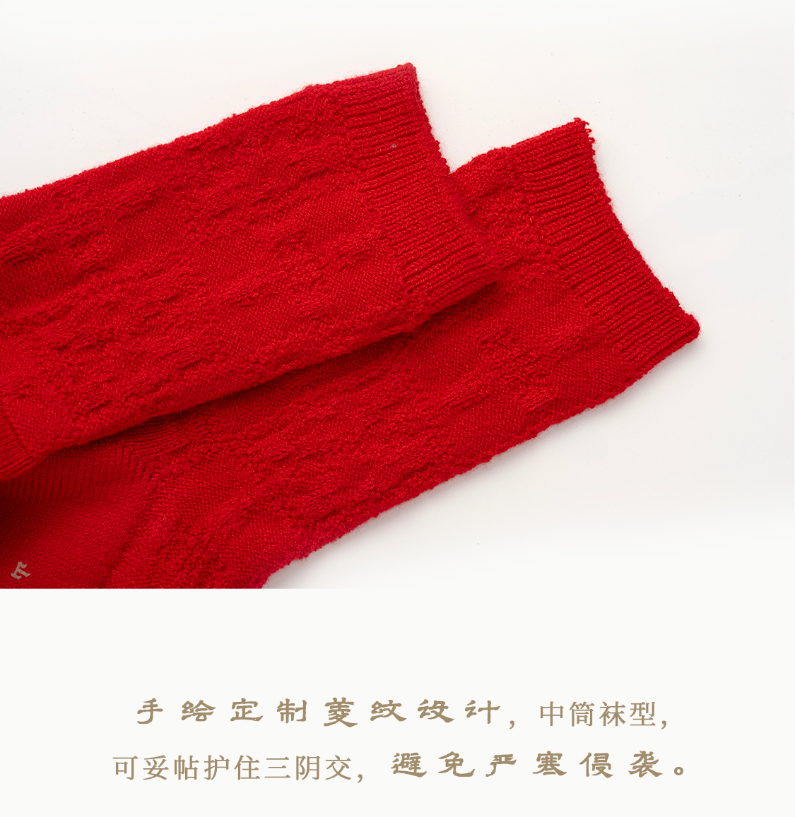 「停」红袜 绵羊毛 菱纹绵软松弹包脚 节庆本命年保暖中筒袜 山林曦照