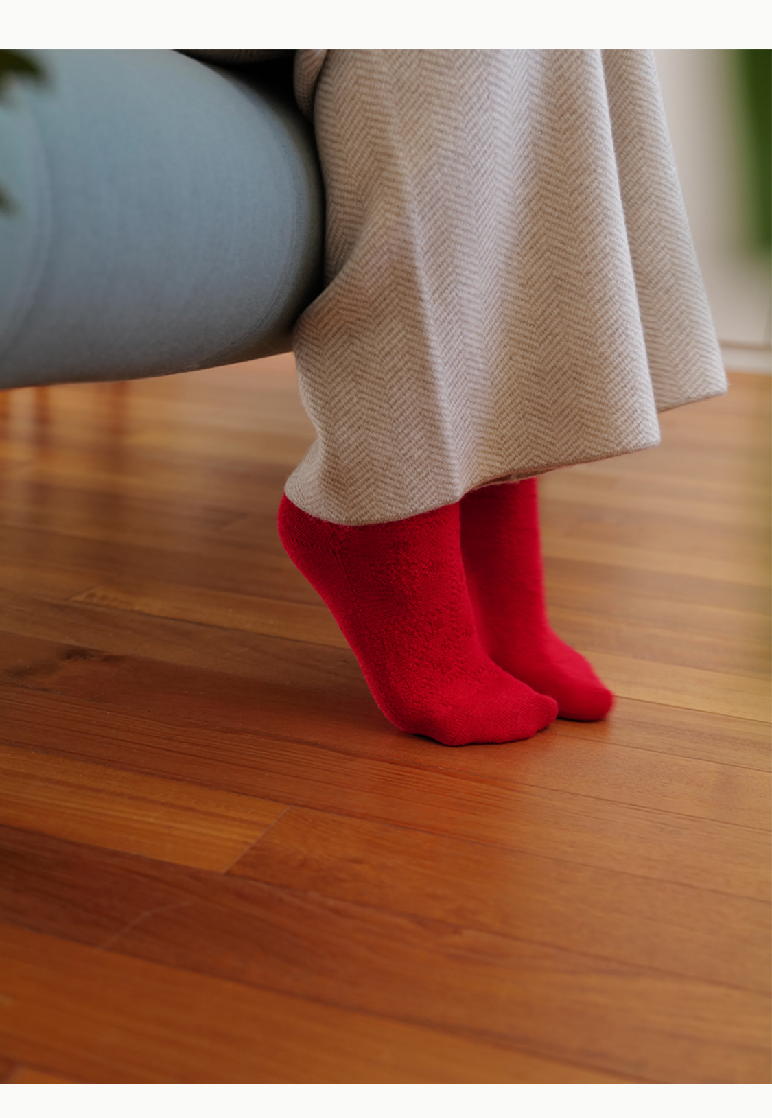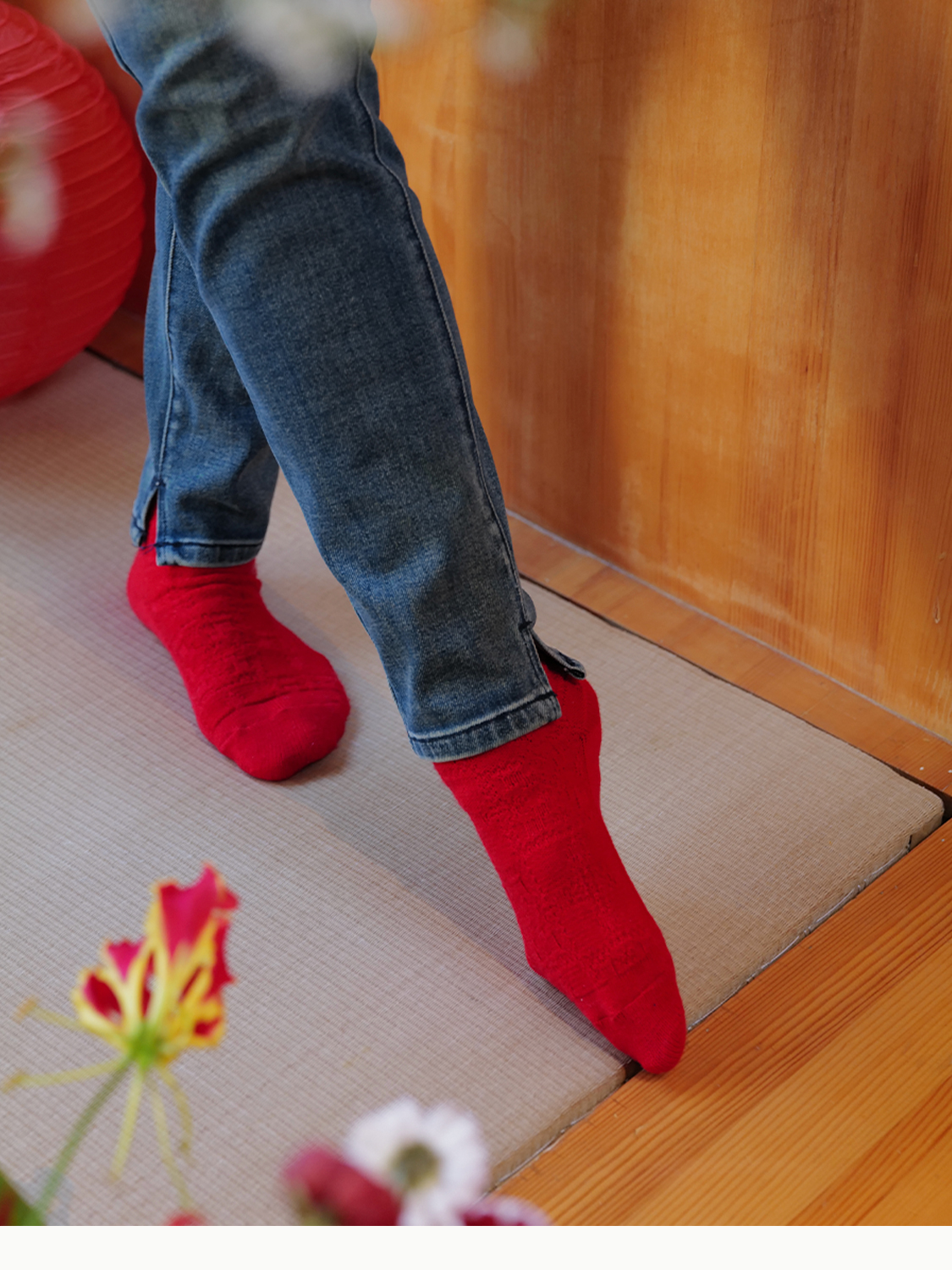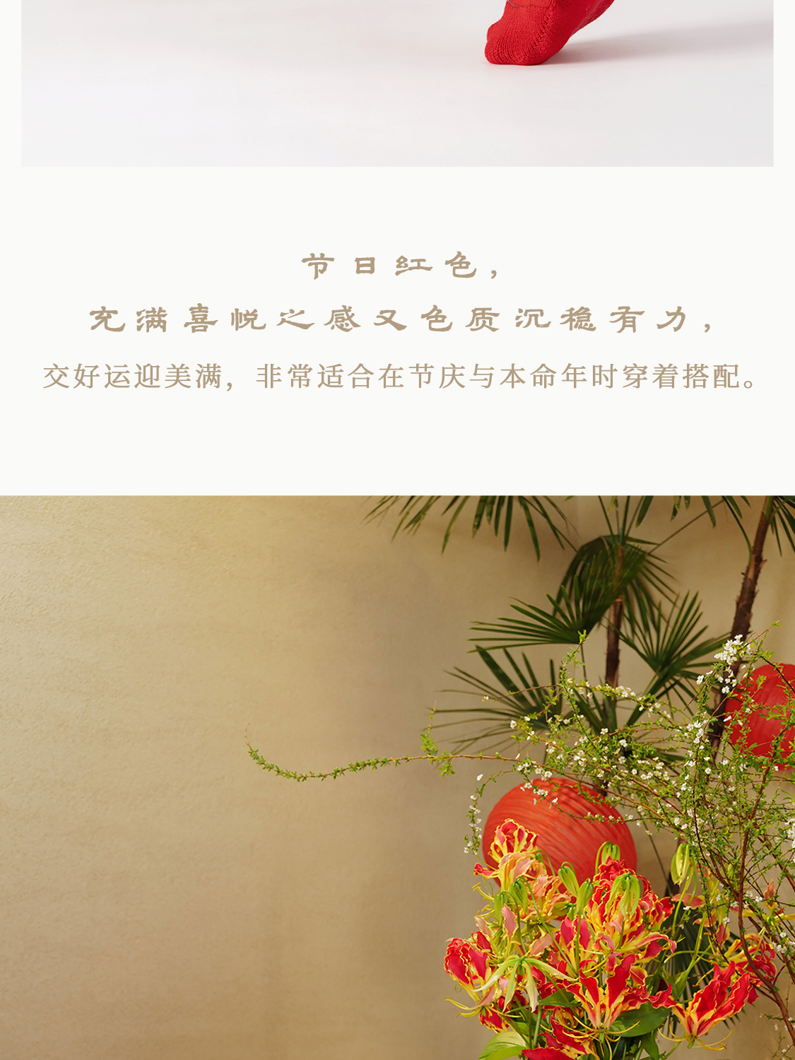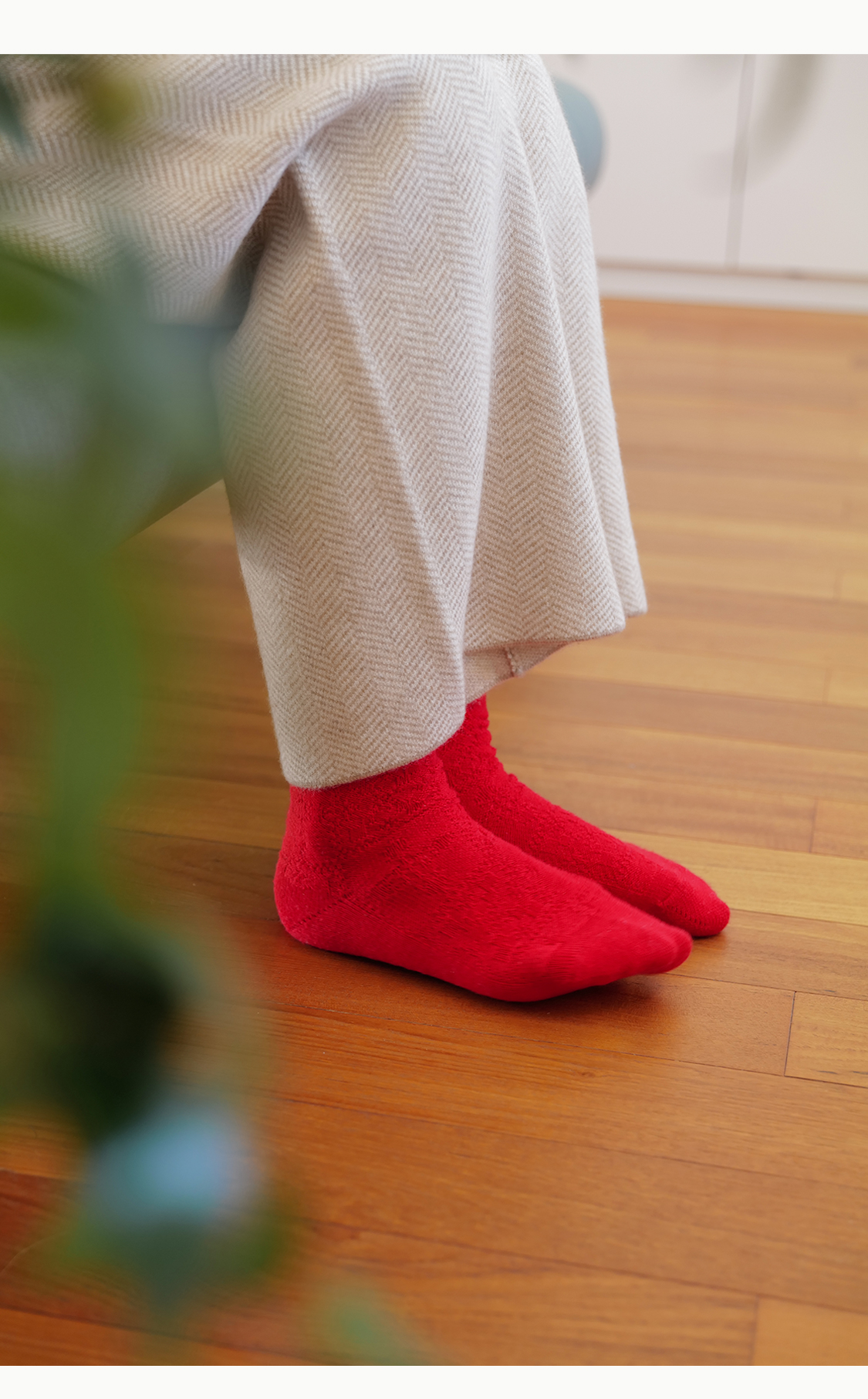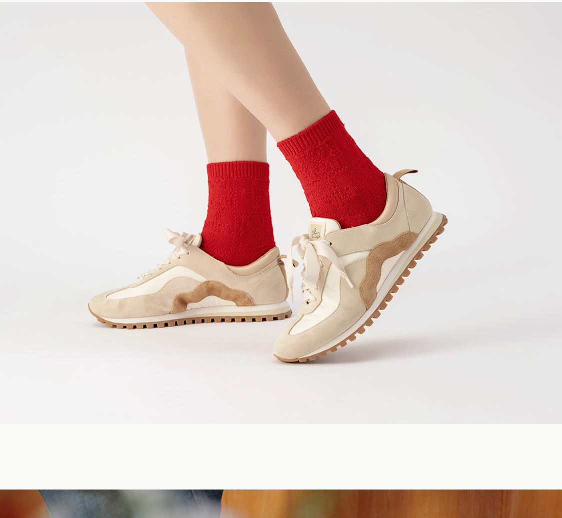 「停」红袜 绵羊毛 菱纹绵软松弹包脚 节庆本命年保暖中筒袜 山林曦照