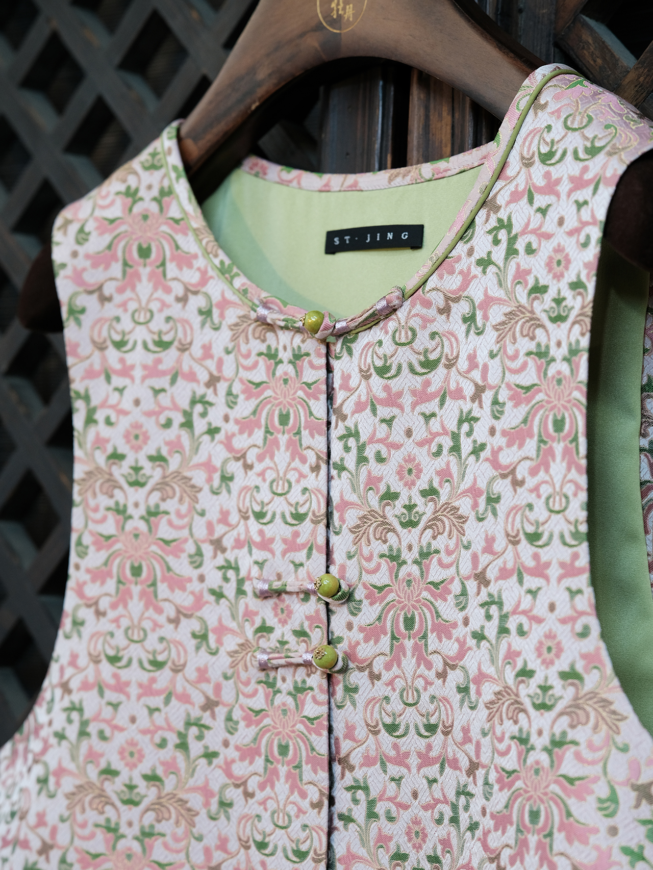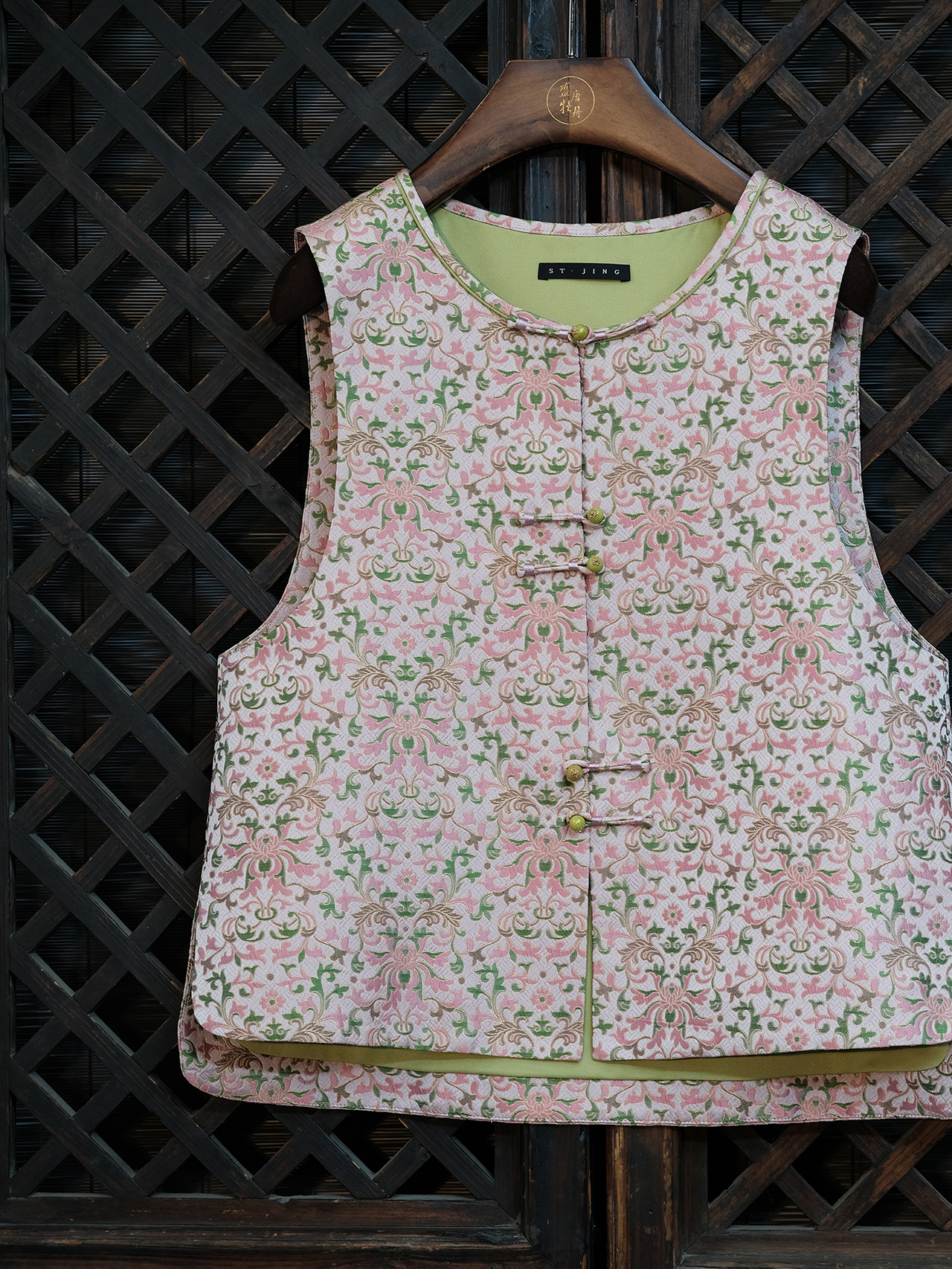 盛唐婧 |中式国风宋锦缠枝花对襟马甲