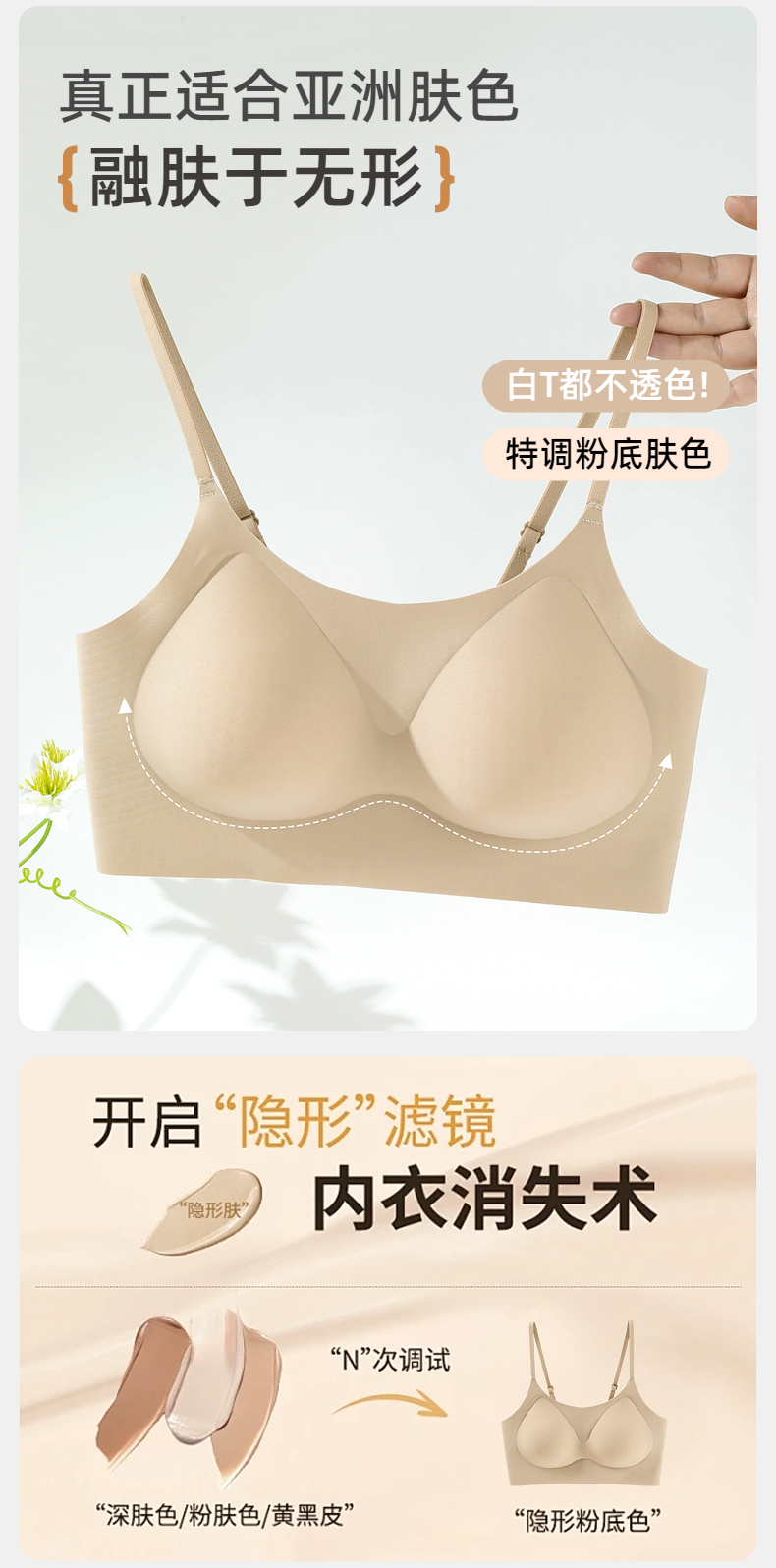 雅黛丽内衣女小胸聚拢无痕美背文胸背心式粉底液隐形薄款胸罩2025