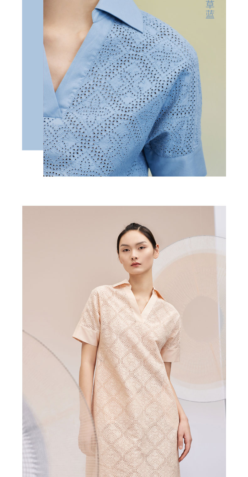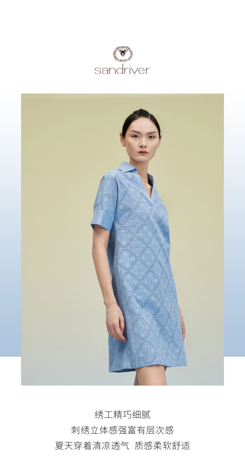 翻领短袖刺绣纯棉连衣裙 SJS95W003W