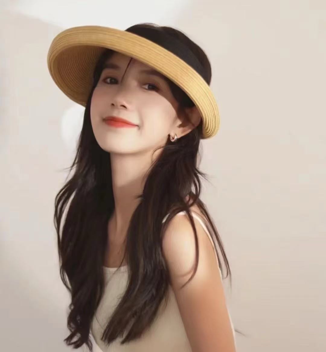 百搭日式 大檐遮阳 空顶草帽