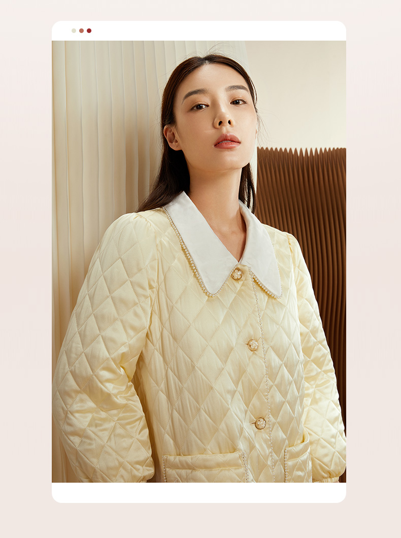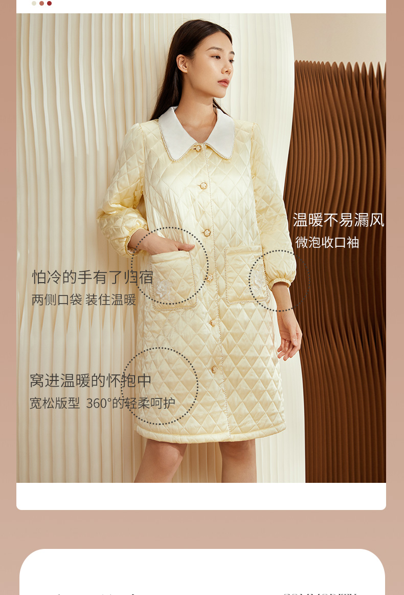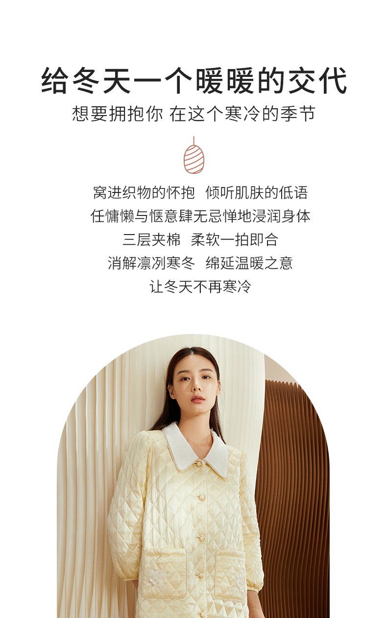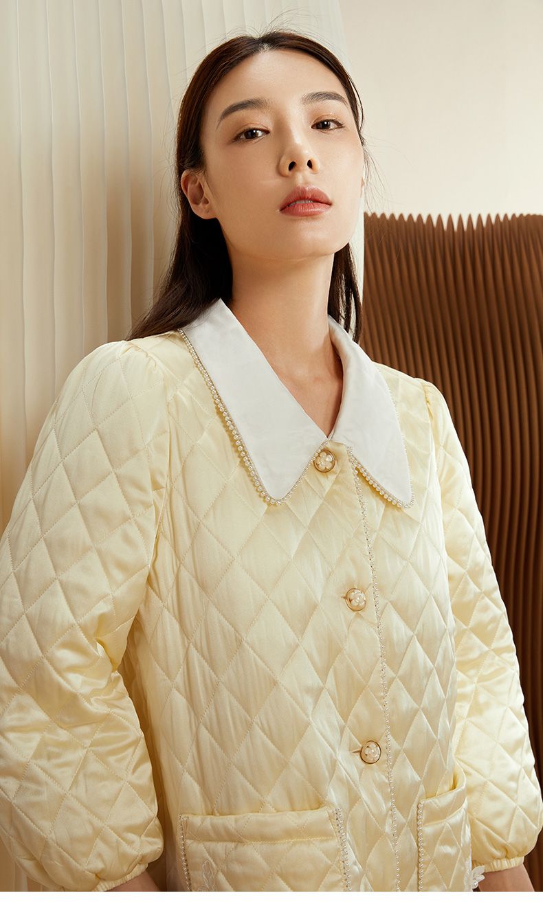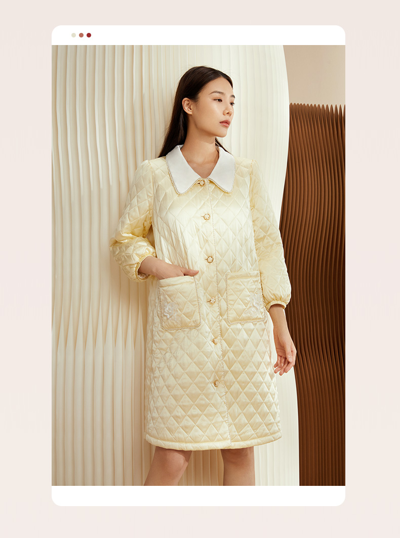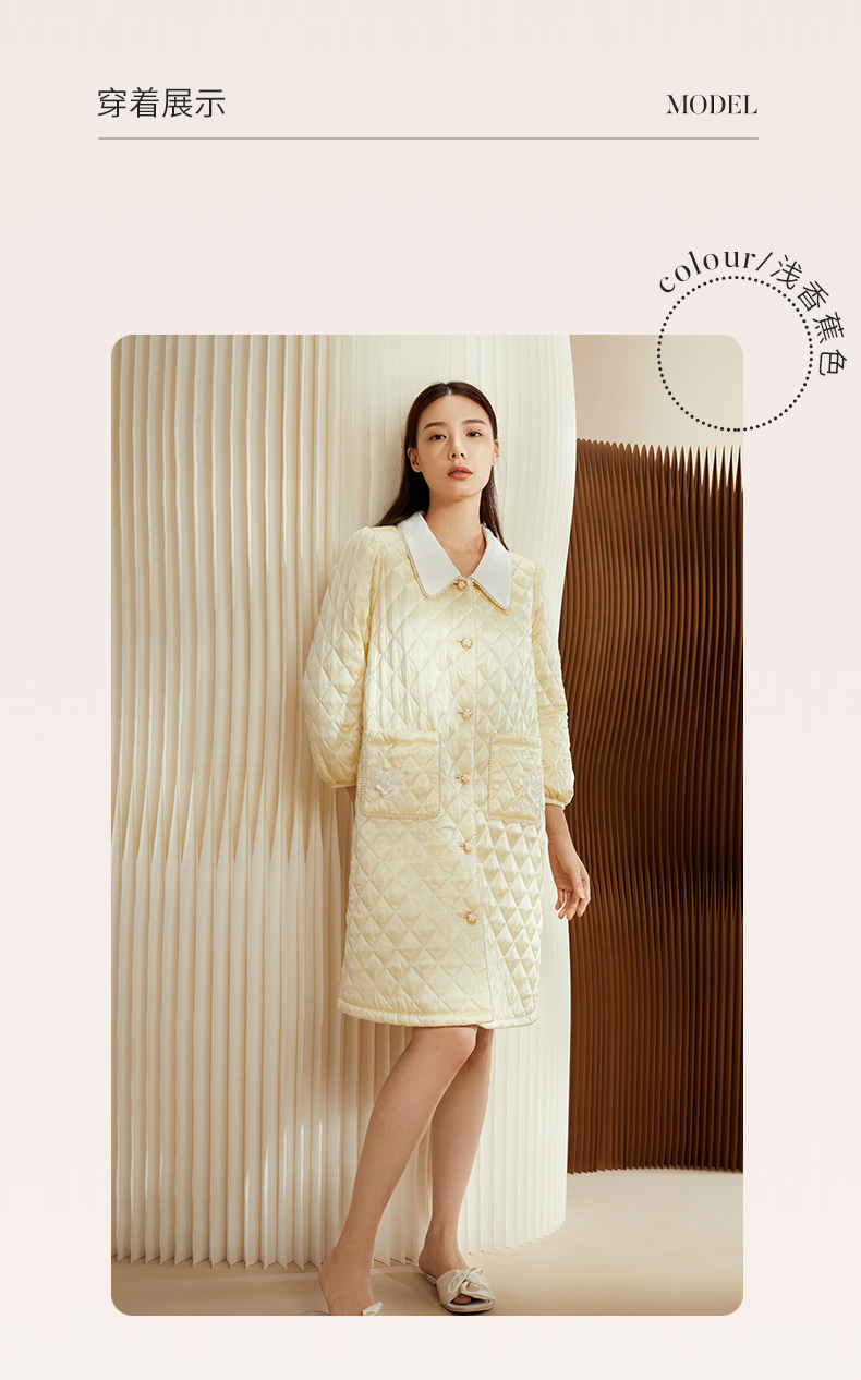 金三塔女士真丝夹棉撞色睡袍 秋冬轻盈保暖宽松加厚家居服 YSFCD101