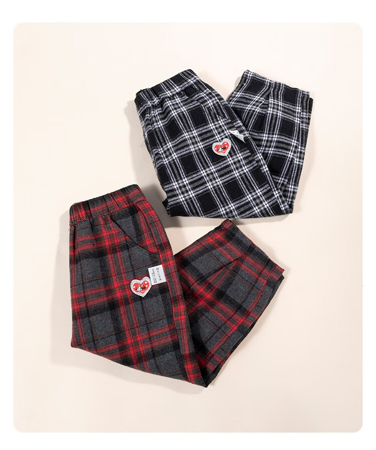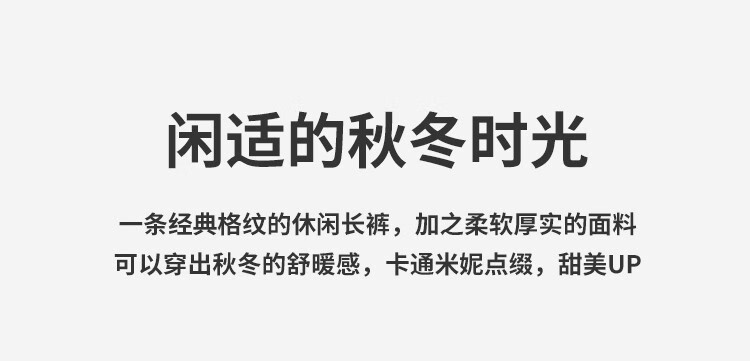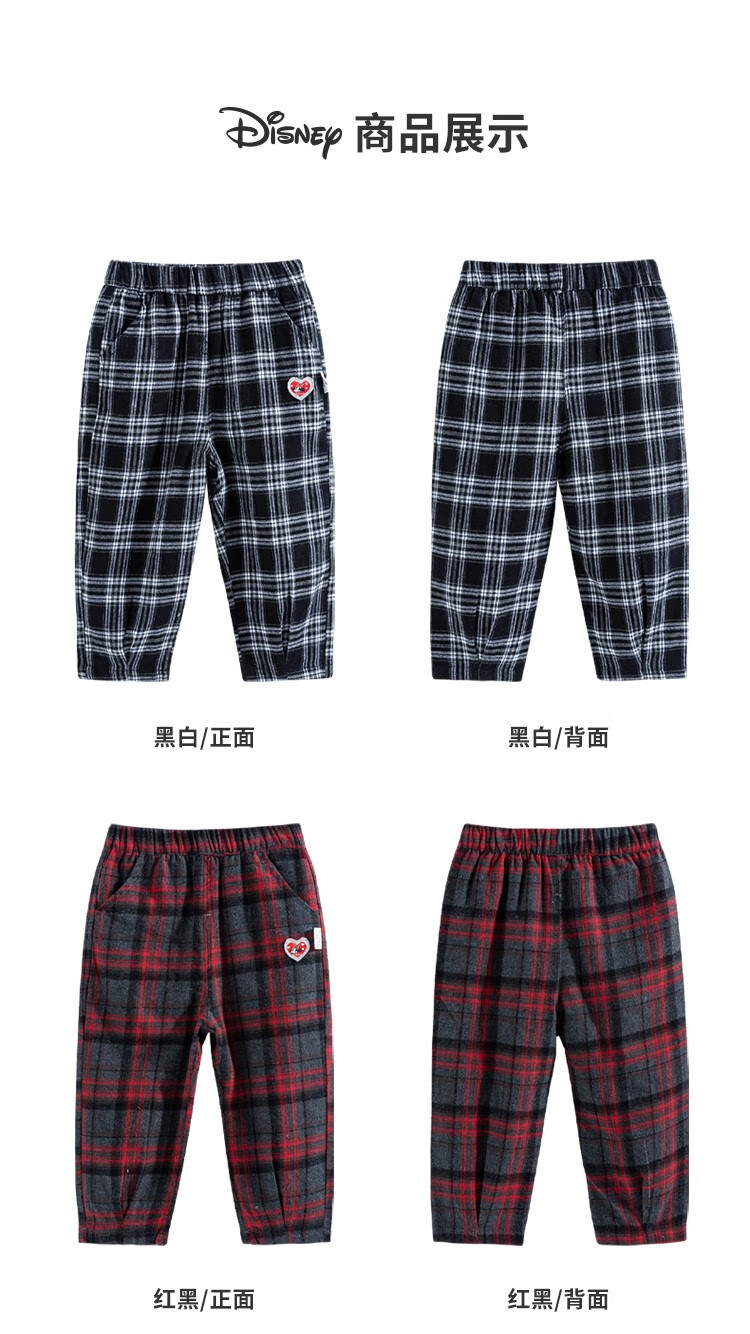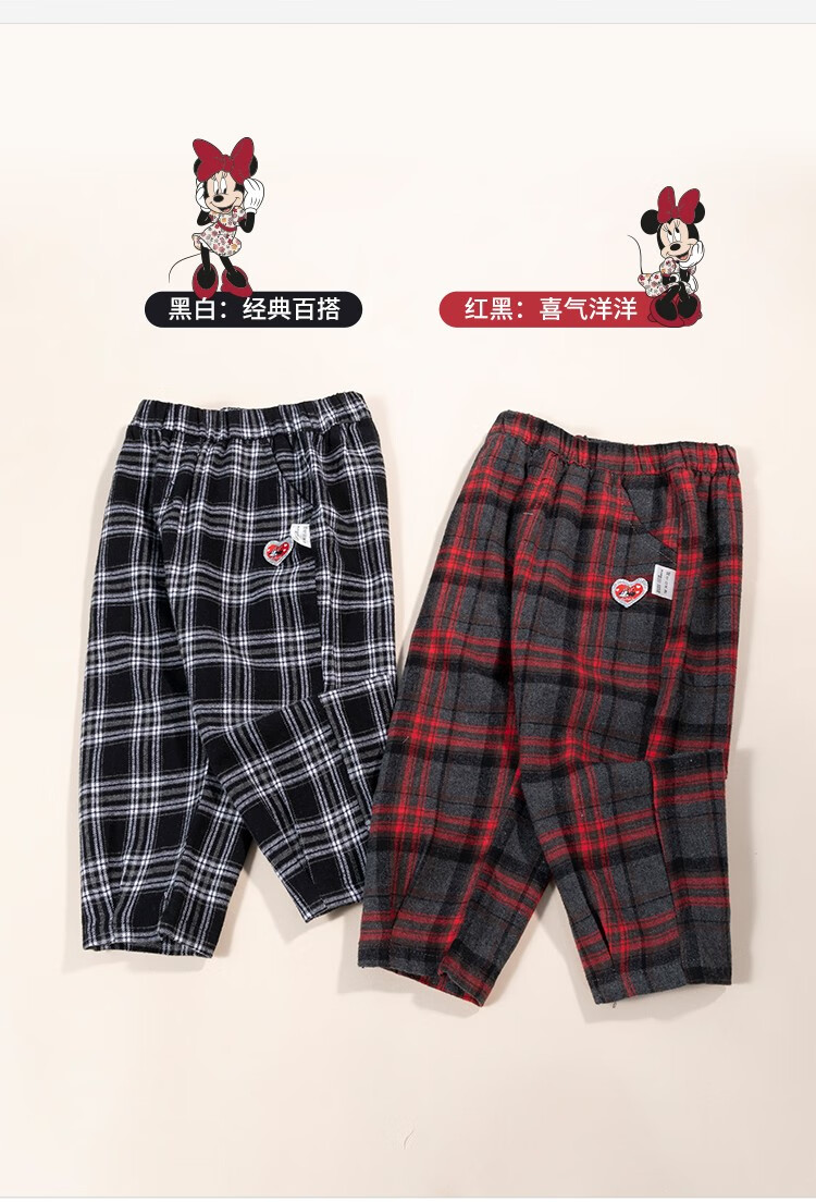【商场同款】迪士尼童装秋冬新品女童甜美米妮格子潮流休闲裤防风外出儿童长裤