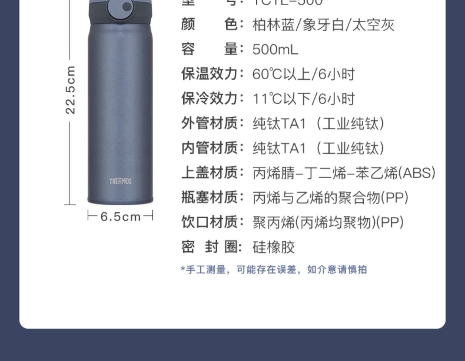 膳魔师钛杯简约超轻纯钛磁力系列保温杯礼盒装TCTL-500