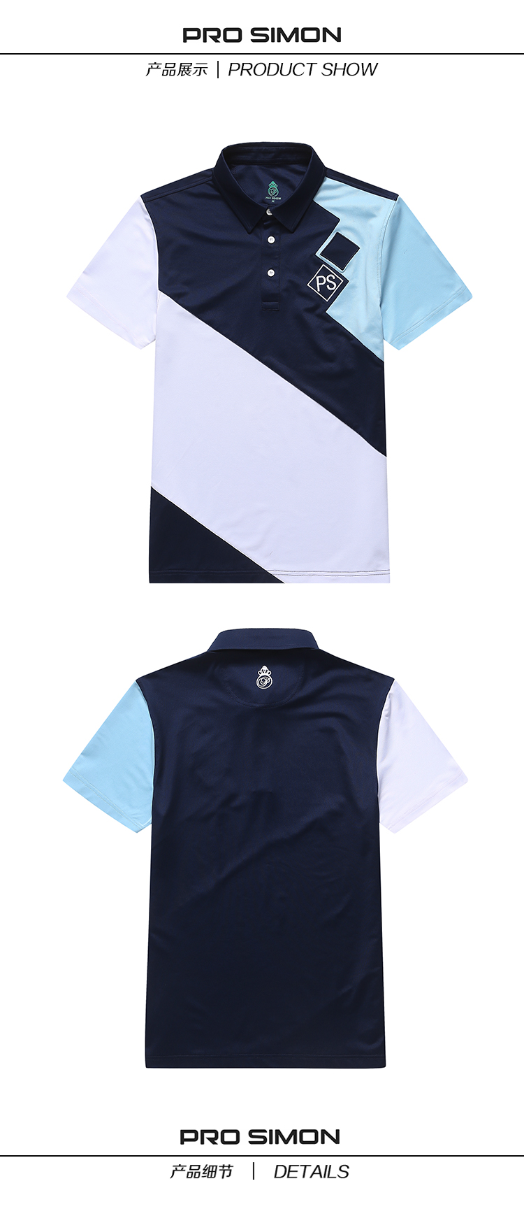 BLS-009A(PROSIMON高尔夫男款春夏短袖拼色翻领设计Polo衫