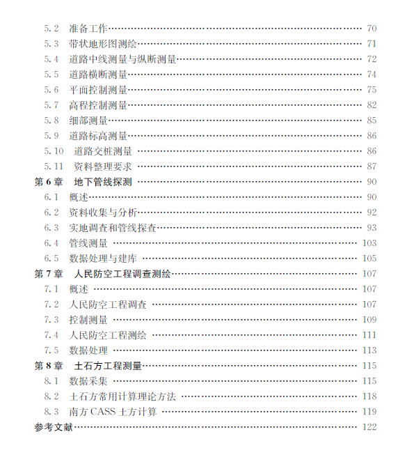 本书根据城市建设的实际情况,结合测绘工程应用于城市建设的成功案例,重点选取了1∶500地形图测绘、土地勘测定界测绘、不动产测绘、建设工程竣工规划测量、城市规划道路定线测量、地下管线探测、人民防空工程调查测绘、土石方工程测量共八个方面,具体阐述了各测绘工程的作业方法。