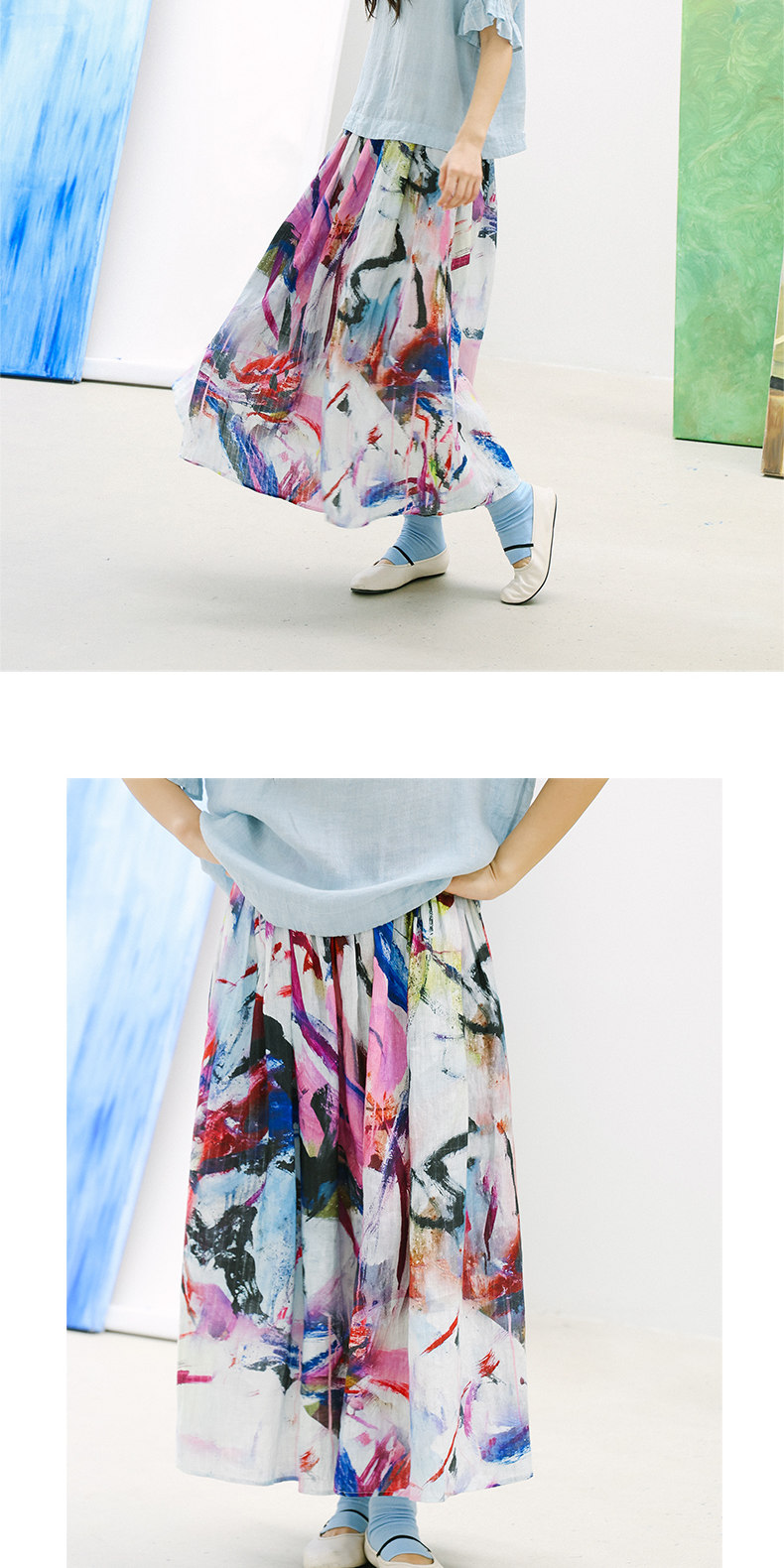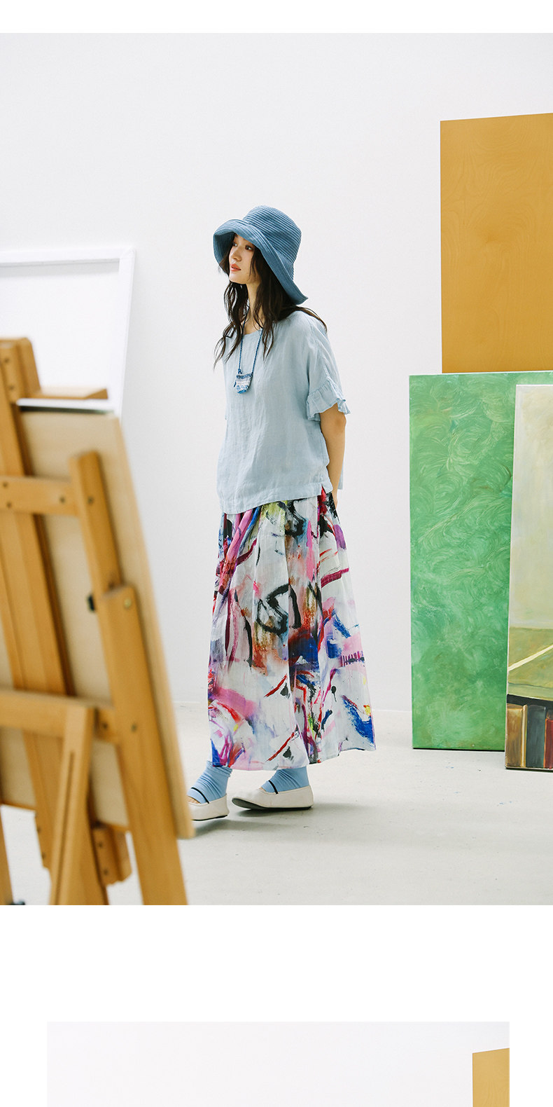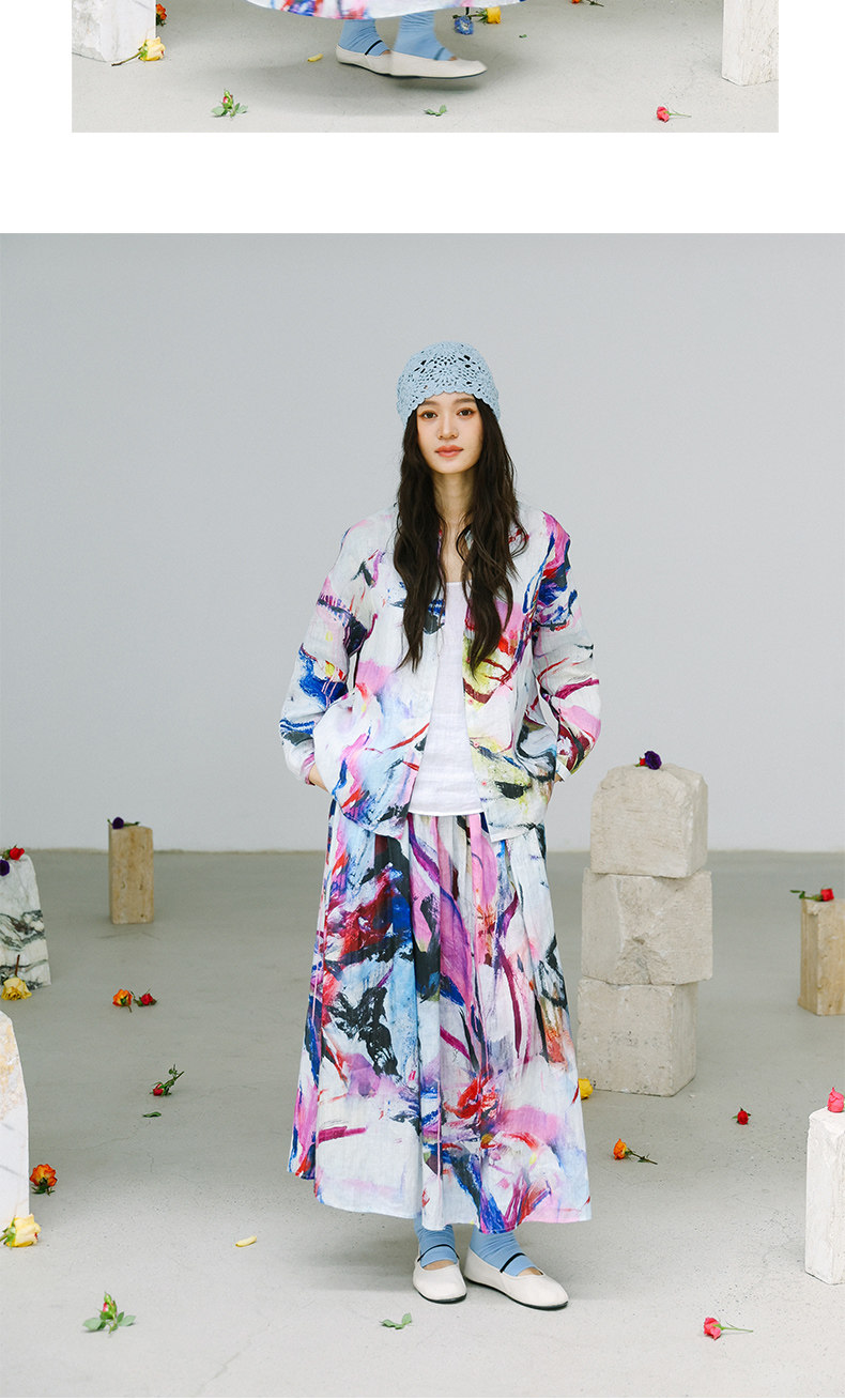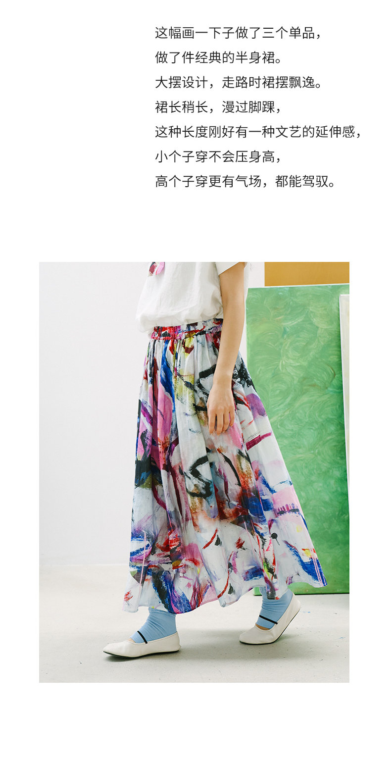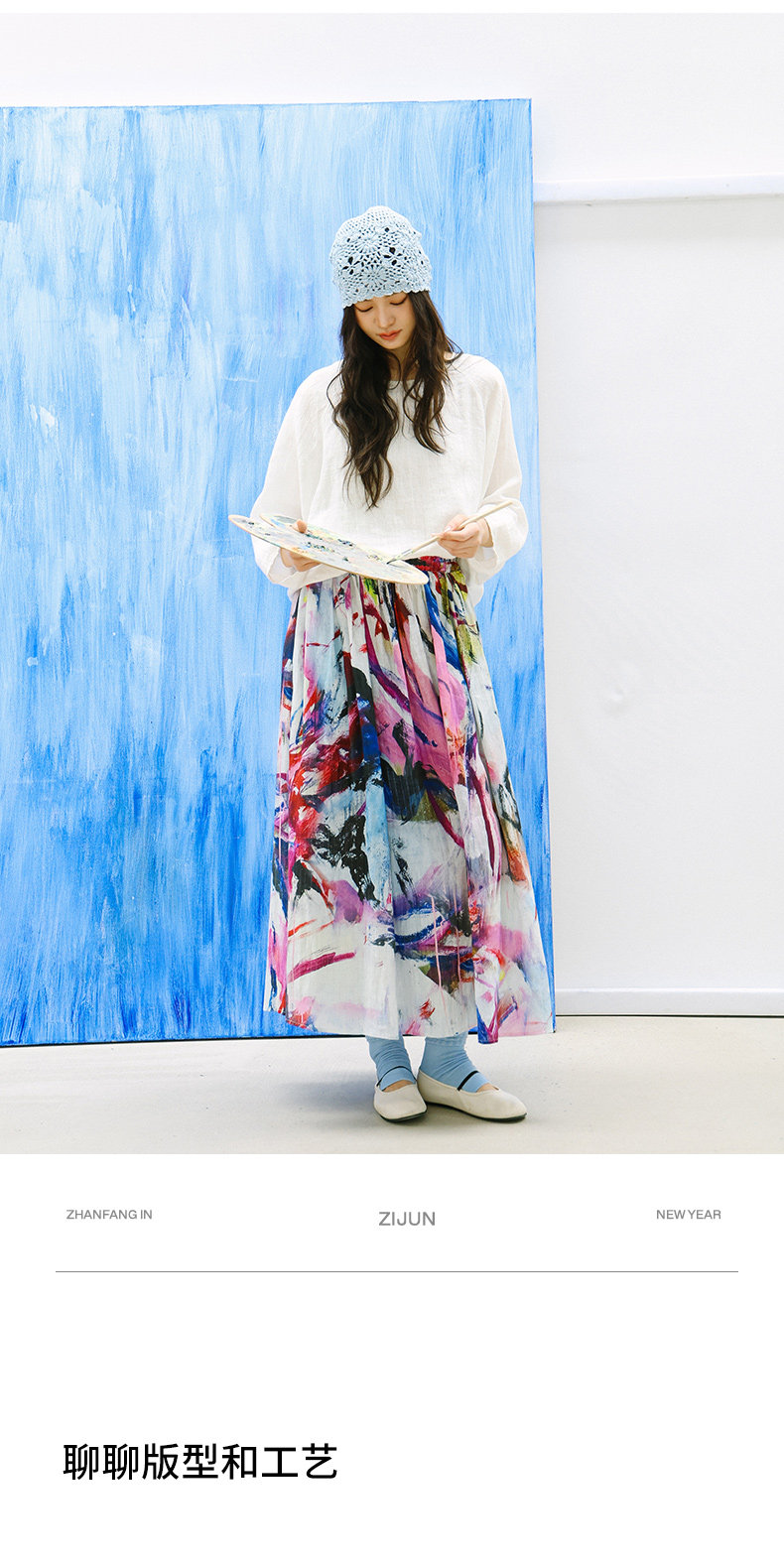 绽放174朵/「余味-2」花半裙*zijun联名系列亚麻印花中长款半身裙