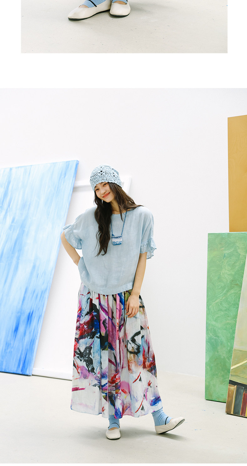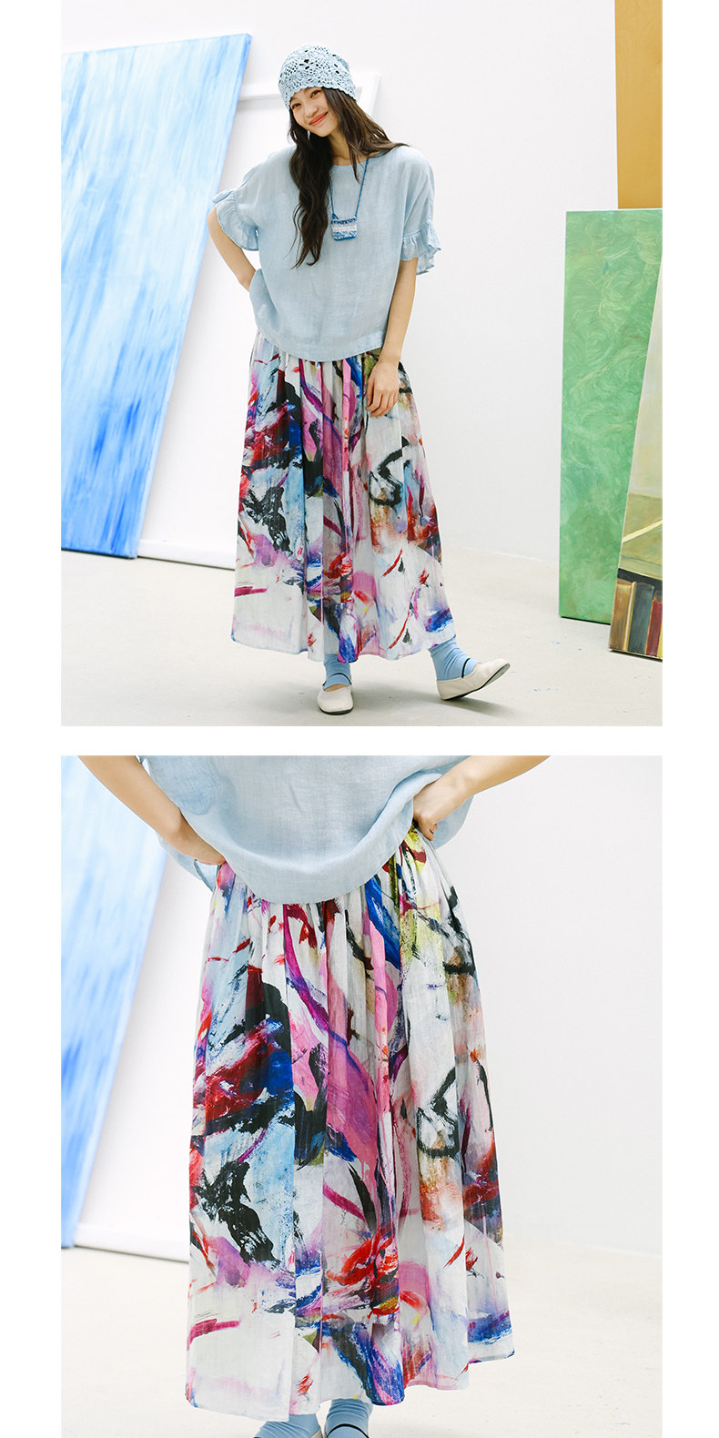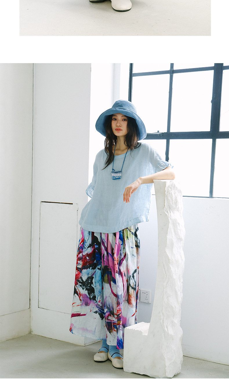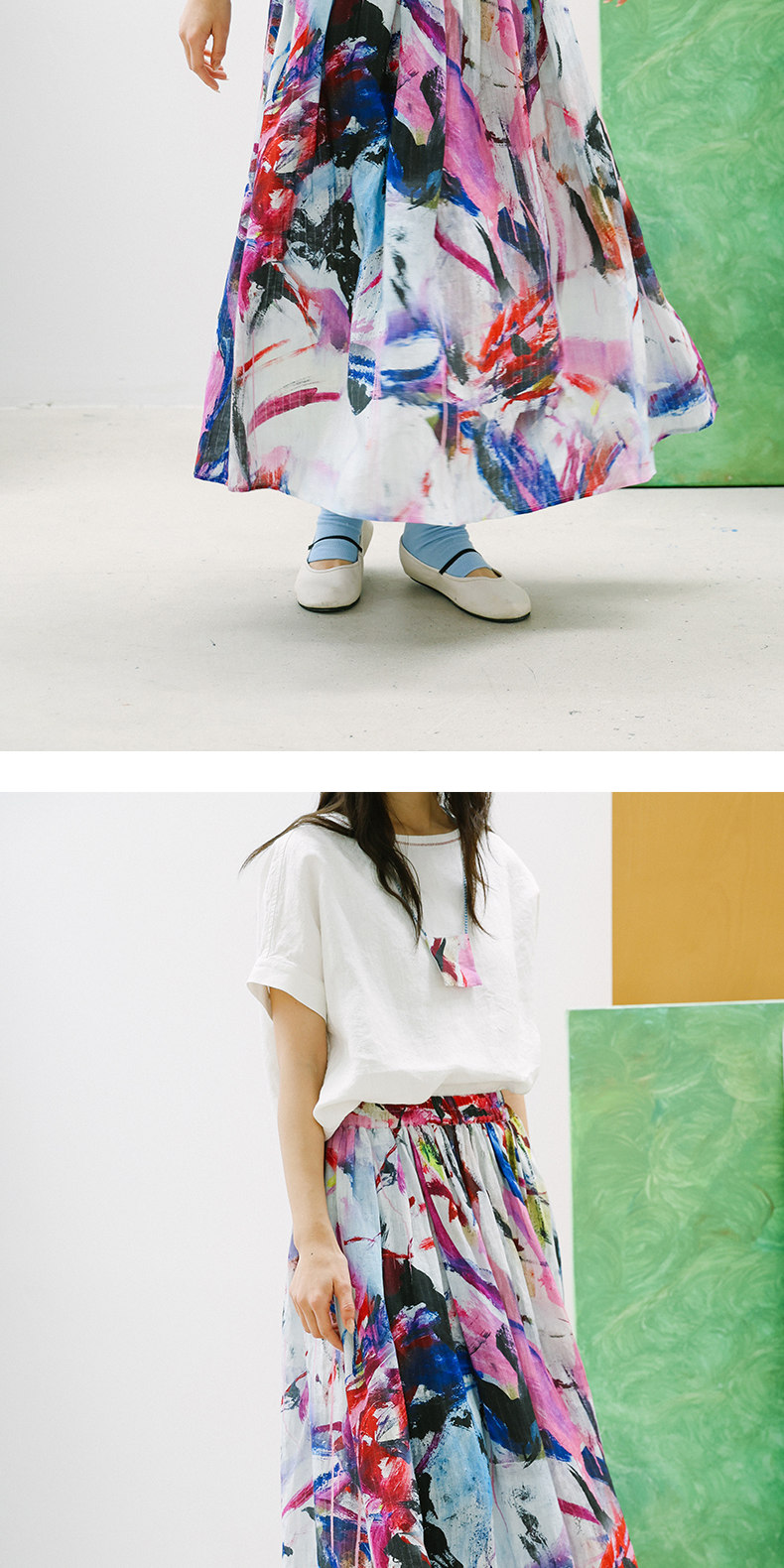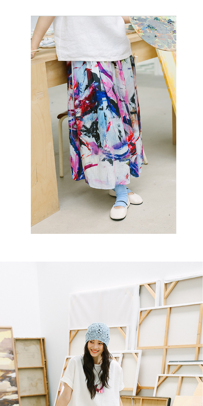 绽放174朵/「余味-2」花半裙*zijun联名系列亚麻印花中长款半身裙