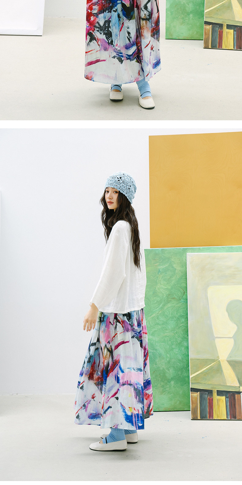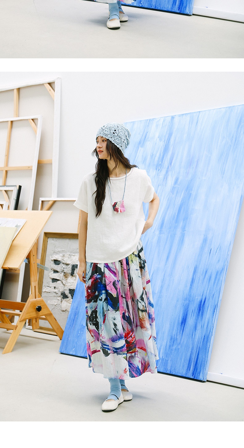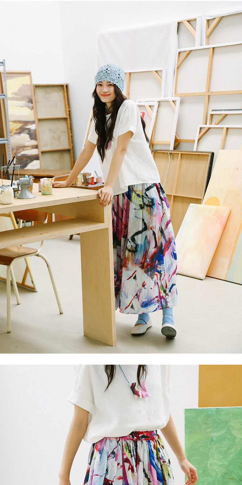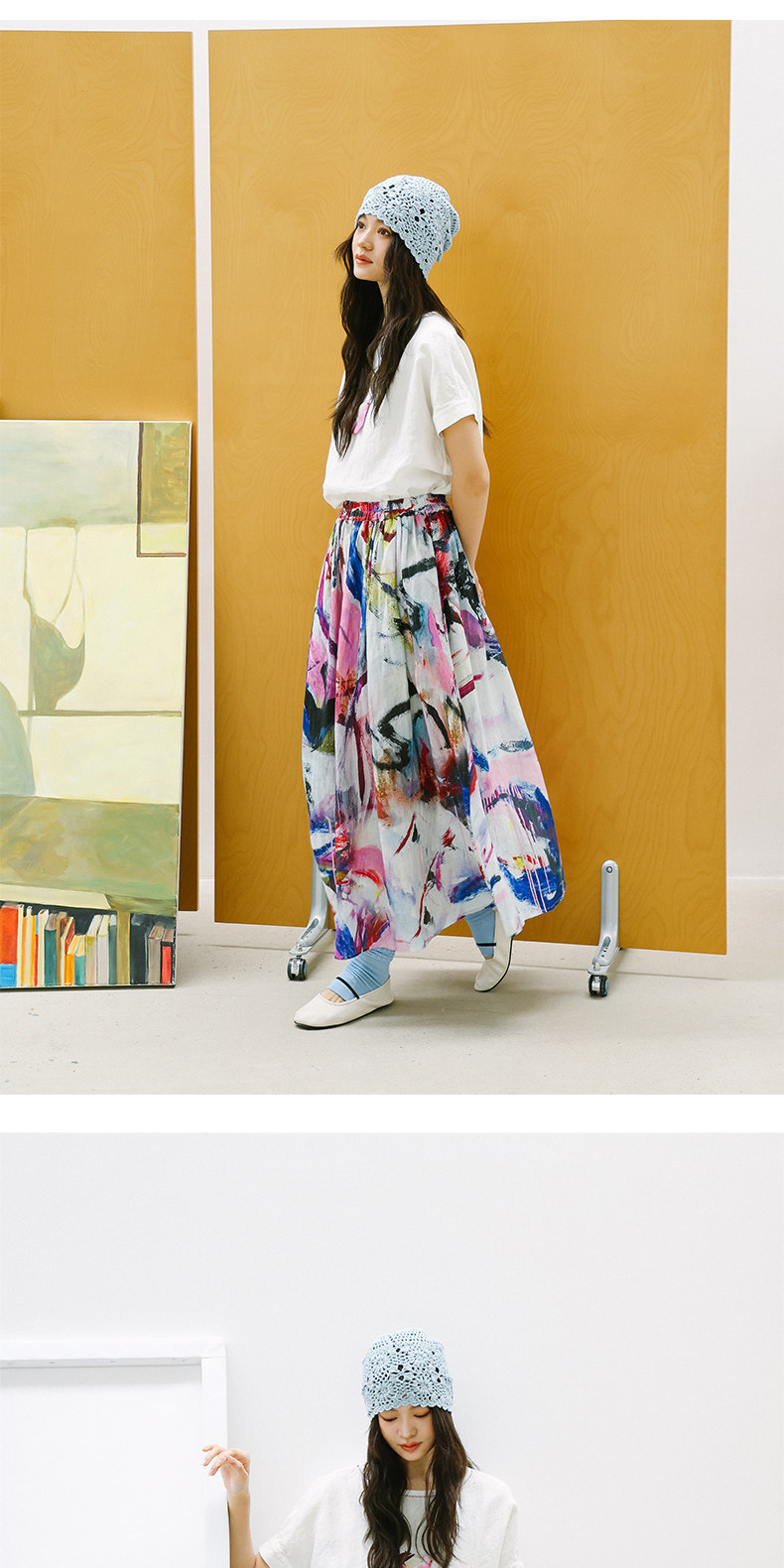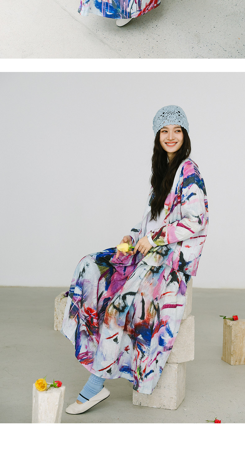 绽放174朵/「余味-2」花半裙*zijun联名系列亚麻印花中长款半身裙