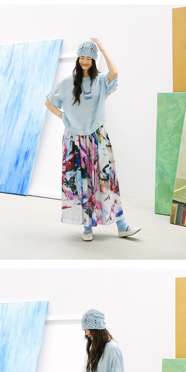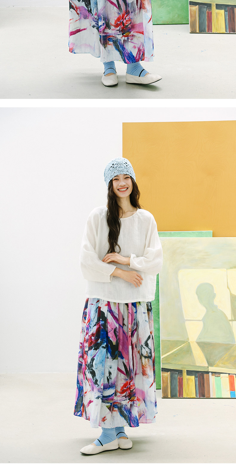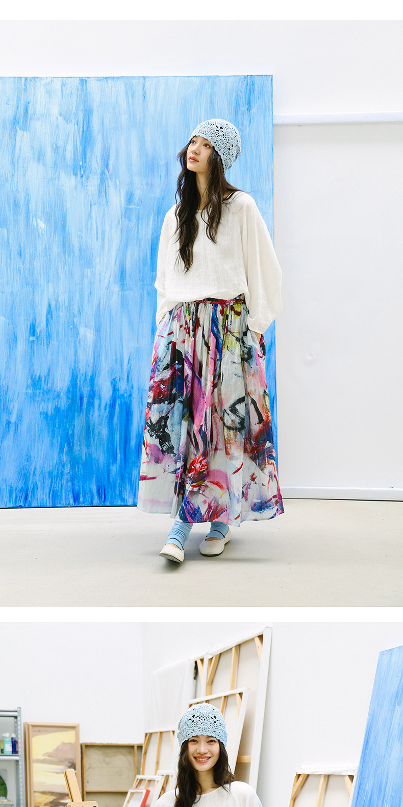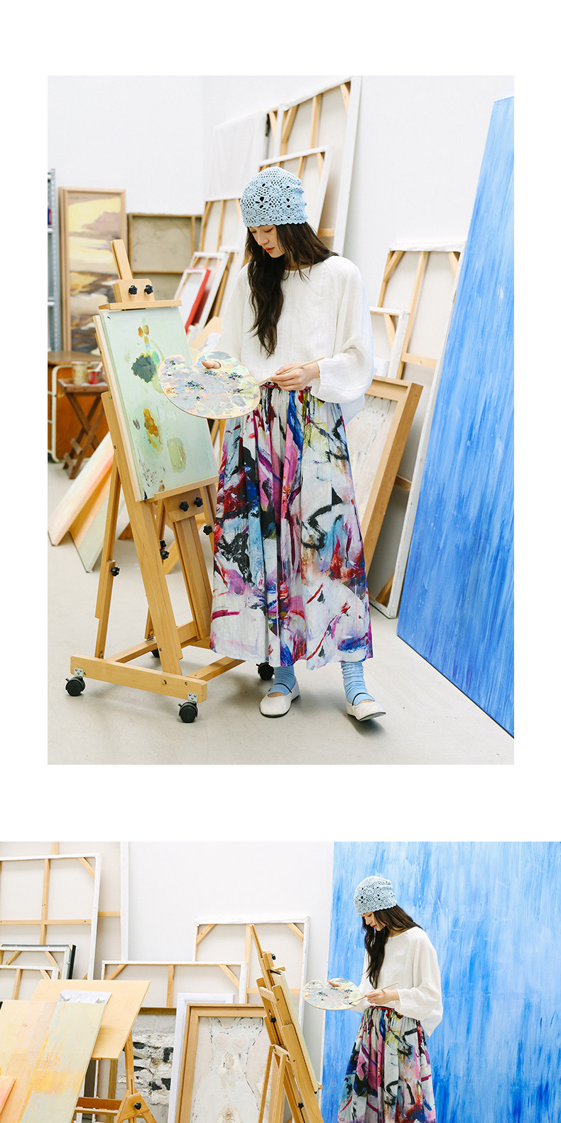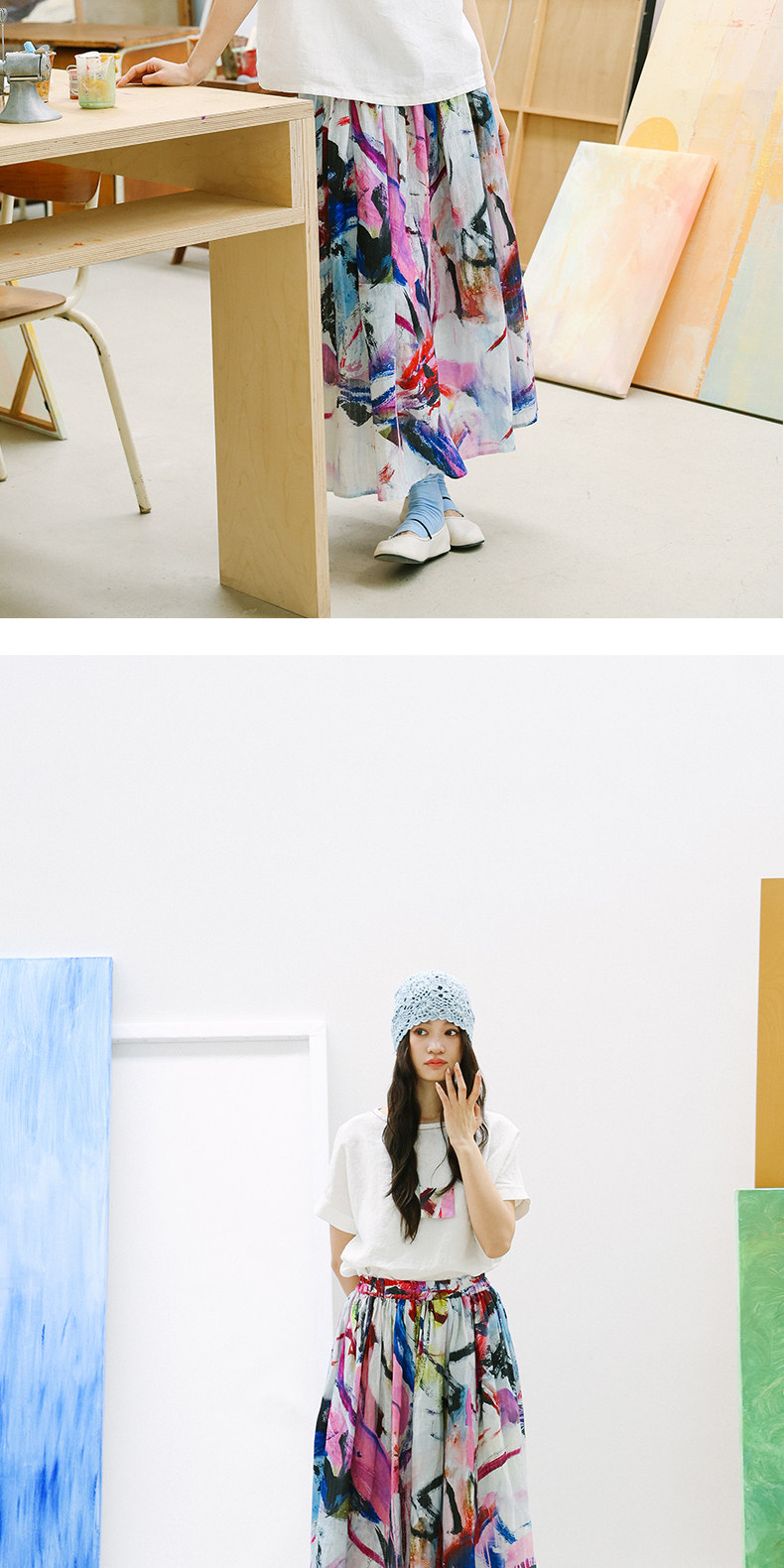 绽放174朵/「余味-2」花半裙*zijun联名系列亚麻印花中长款半身裙