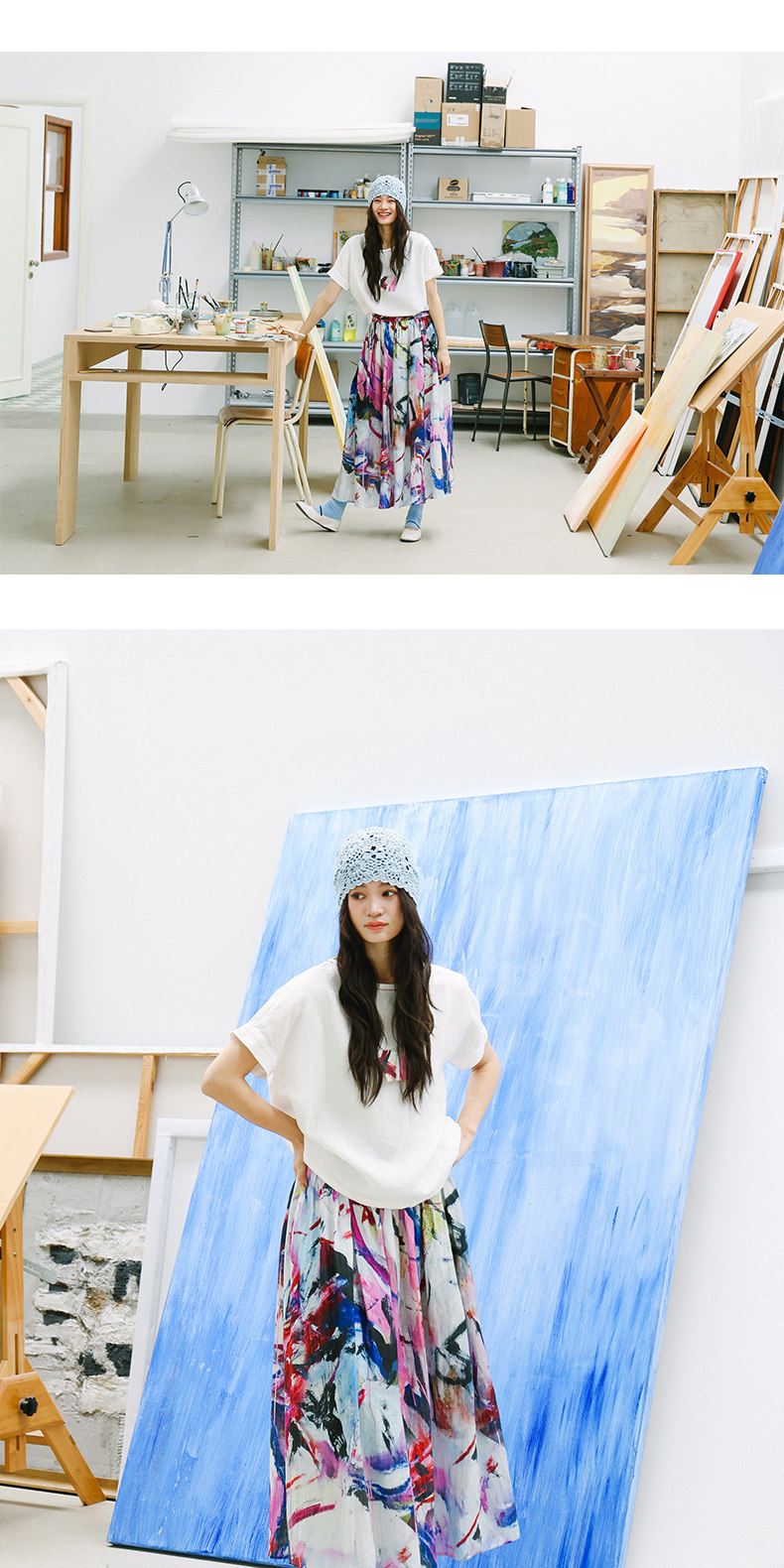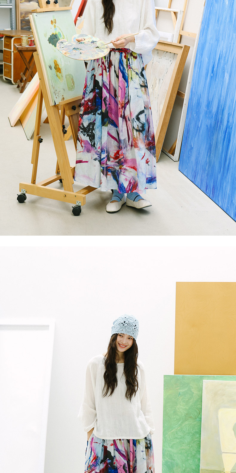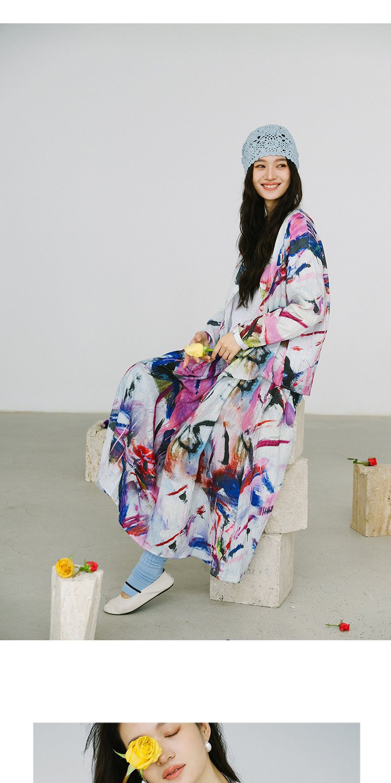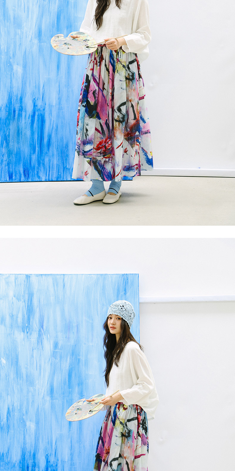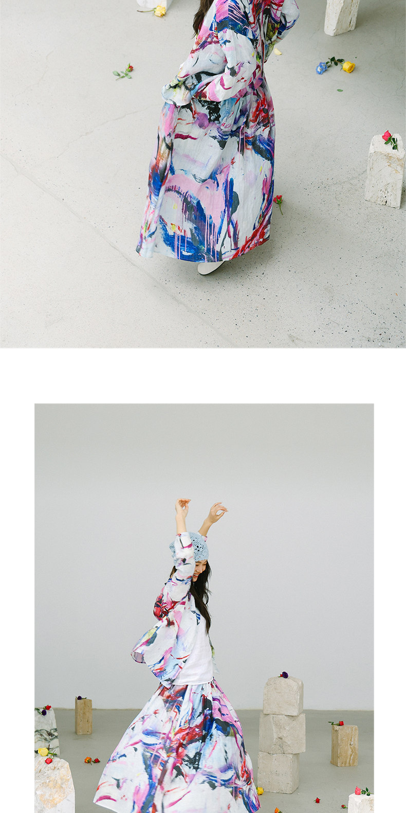 绽放174朵/「余味-2」花半裙*zijun联名系列亚麻印花中长款半身裙