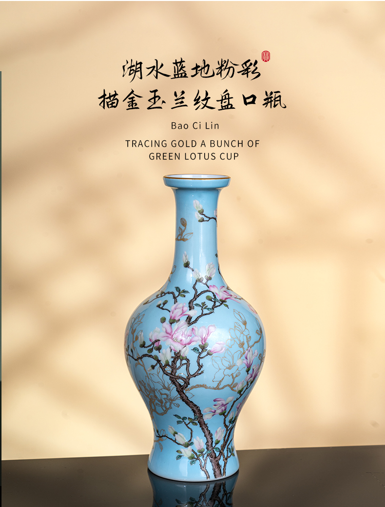 湖水蓝地粉彩描金玉兰纹盘口瓶 商品缩略图0 湖水蓝地粉彩描金玉兰纹盘口瓶 商品缩略图1 湖水蓝地粉彩描金玉兰纹盘口瓶 商品缩略图2 湖水蓝地粉彩描金玉兰纹盘口瓶 商品缩略图3 湖水蓝地粉彩描金玉兰纹盘口瓶 商品缩略图4 湖水蓝地粉彩描金玉兰纹盘口瓶 商品缩略图5