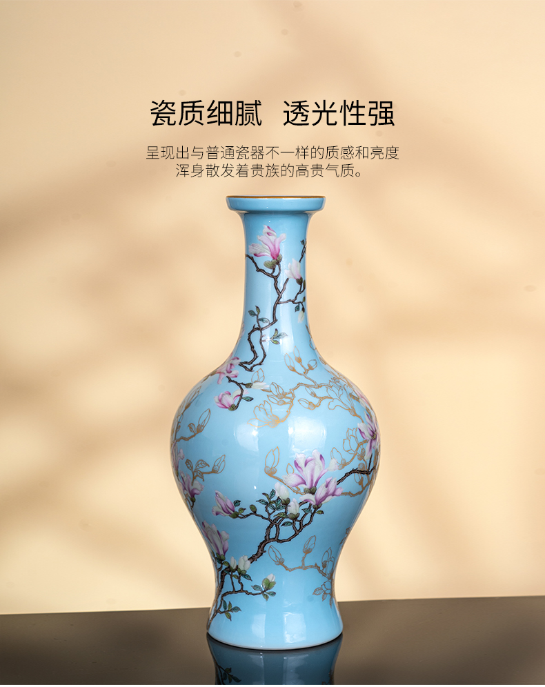 湖水蓝地粉彩描金玉兰纹盘口瓶 商品图1