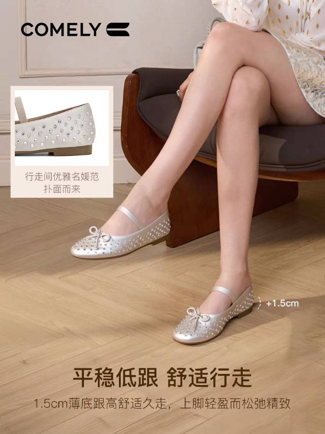 【云粉节】BF楼康莉法式芭蕾鞋女2025新款水钻平底通勤浅口单鞋玛丽珍鞋KYQ55398 吊牌价1080 活动价539