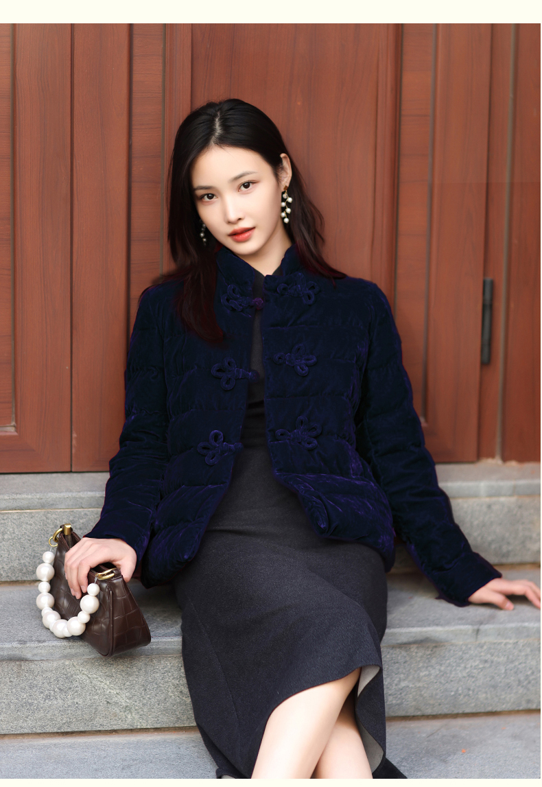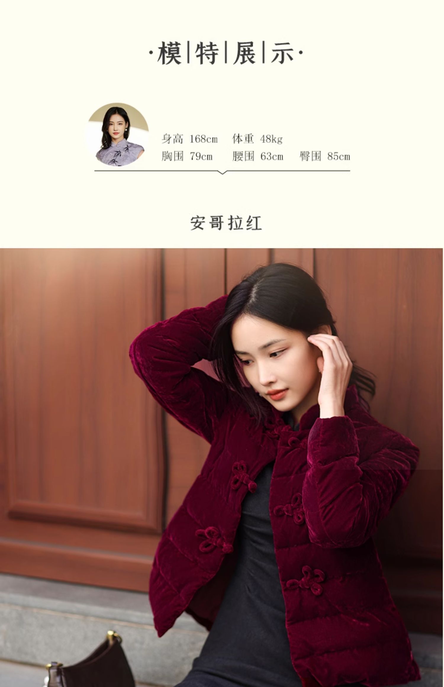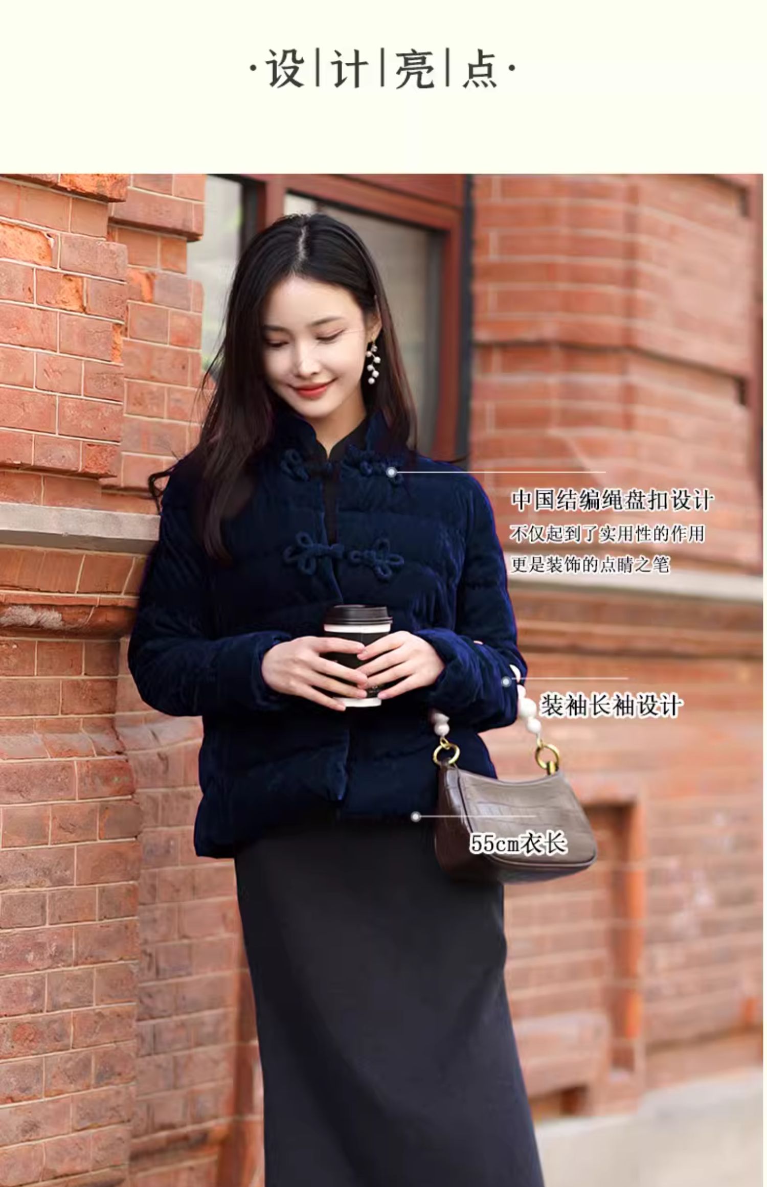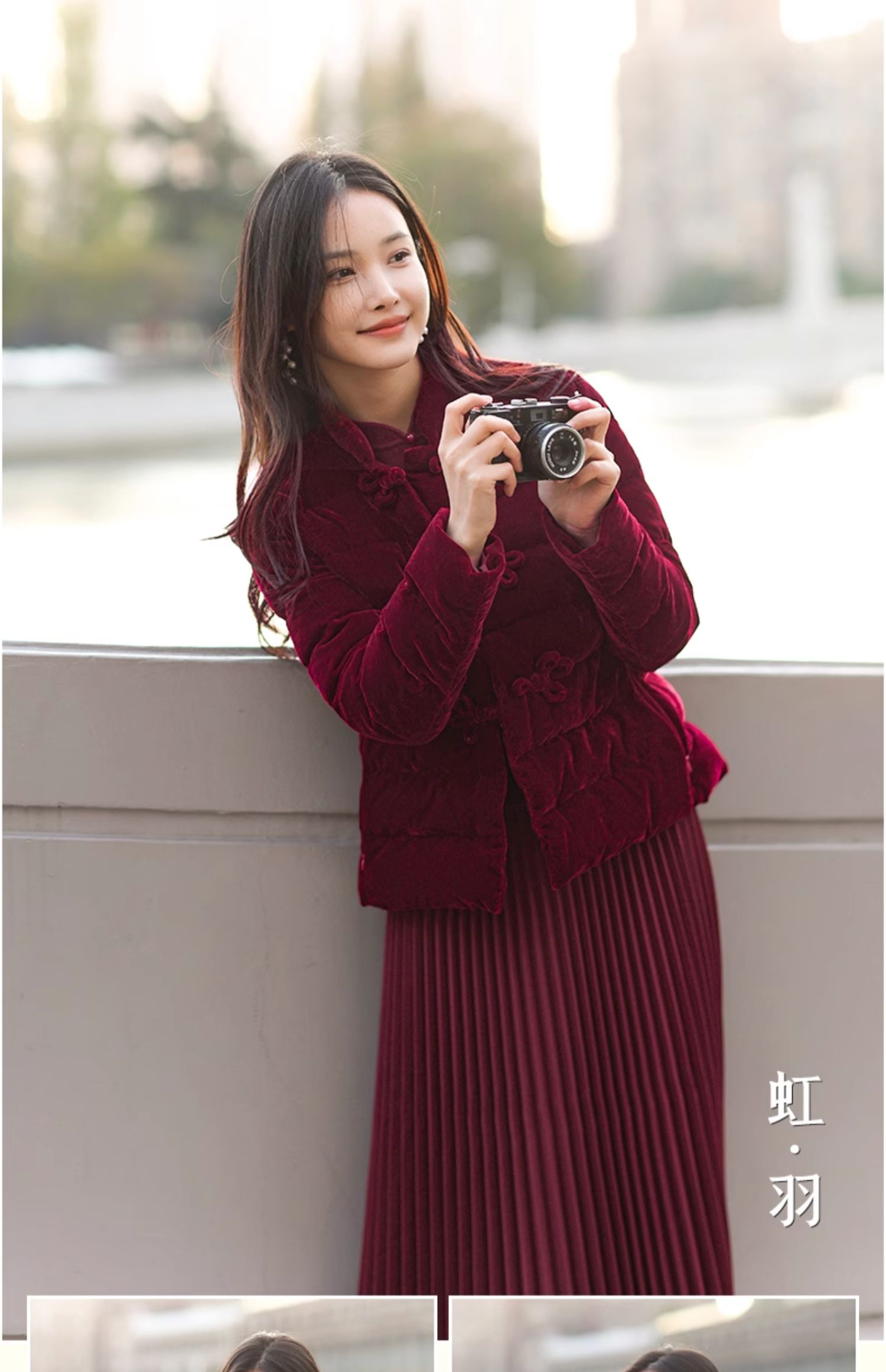 上海逸红颜 虹羽 2025年秋冬新款 古法手工盘扣白鸭绒丝绒羽绒服