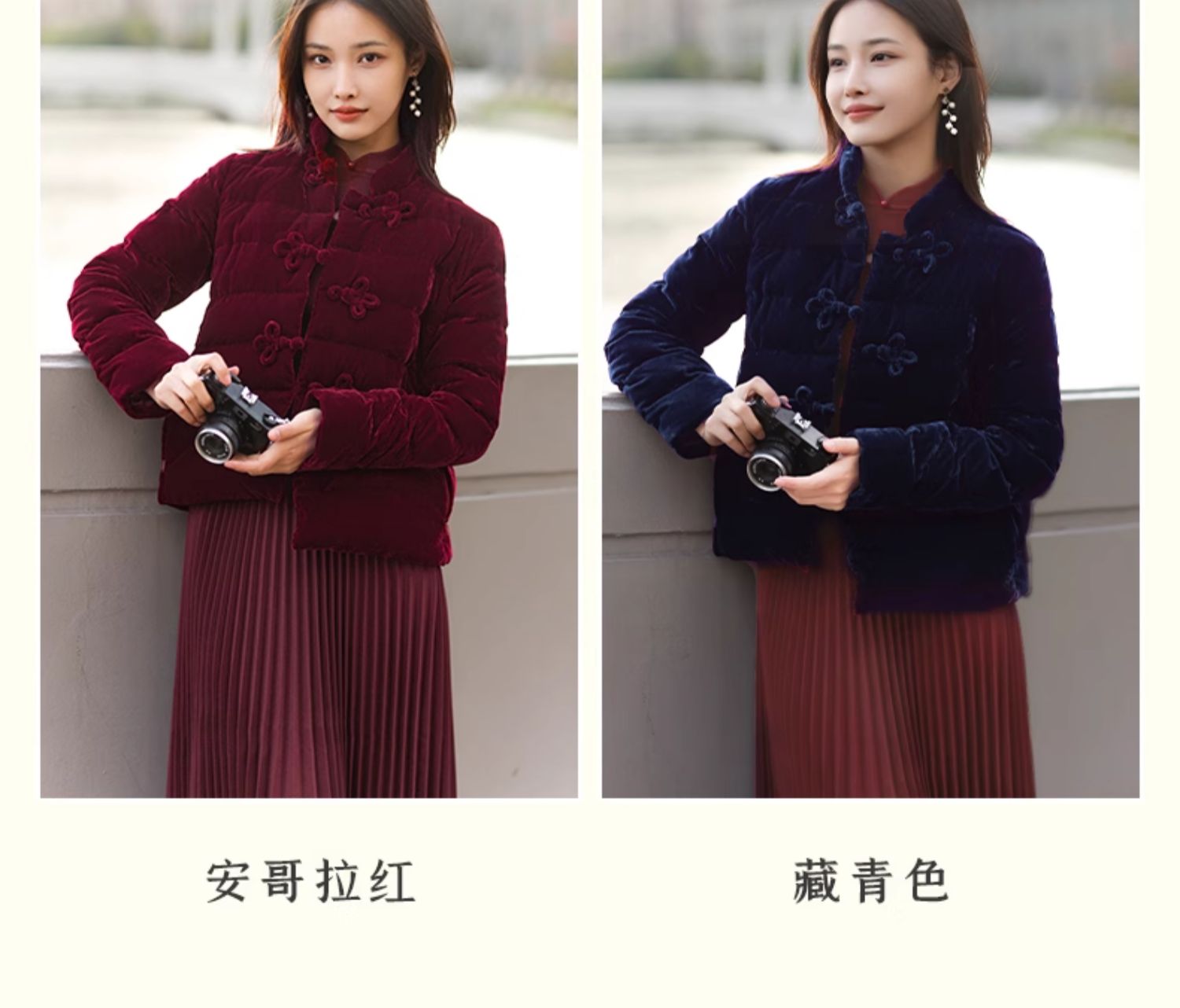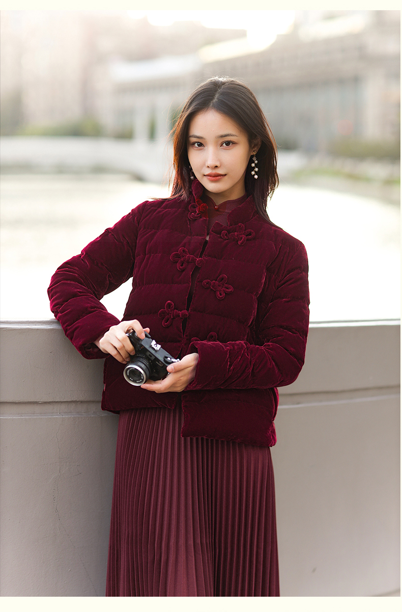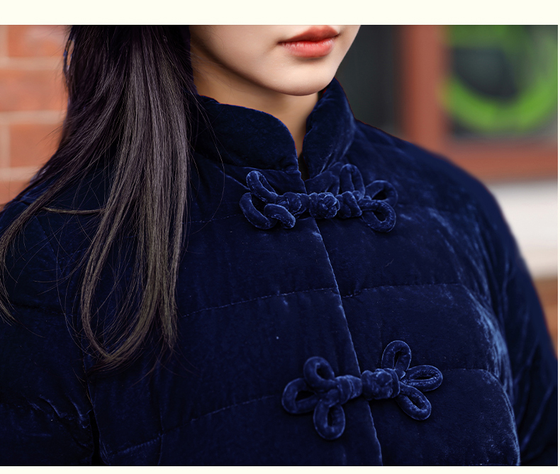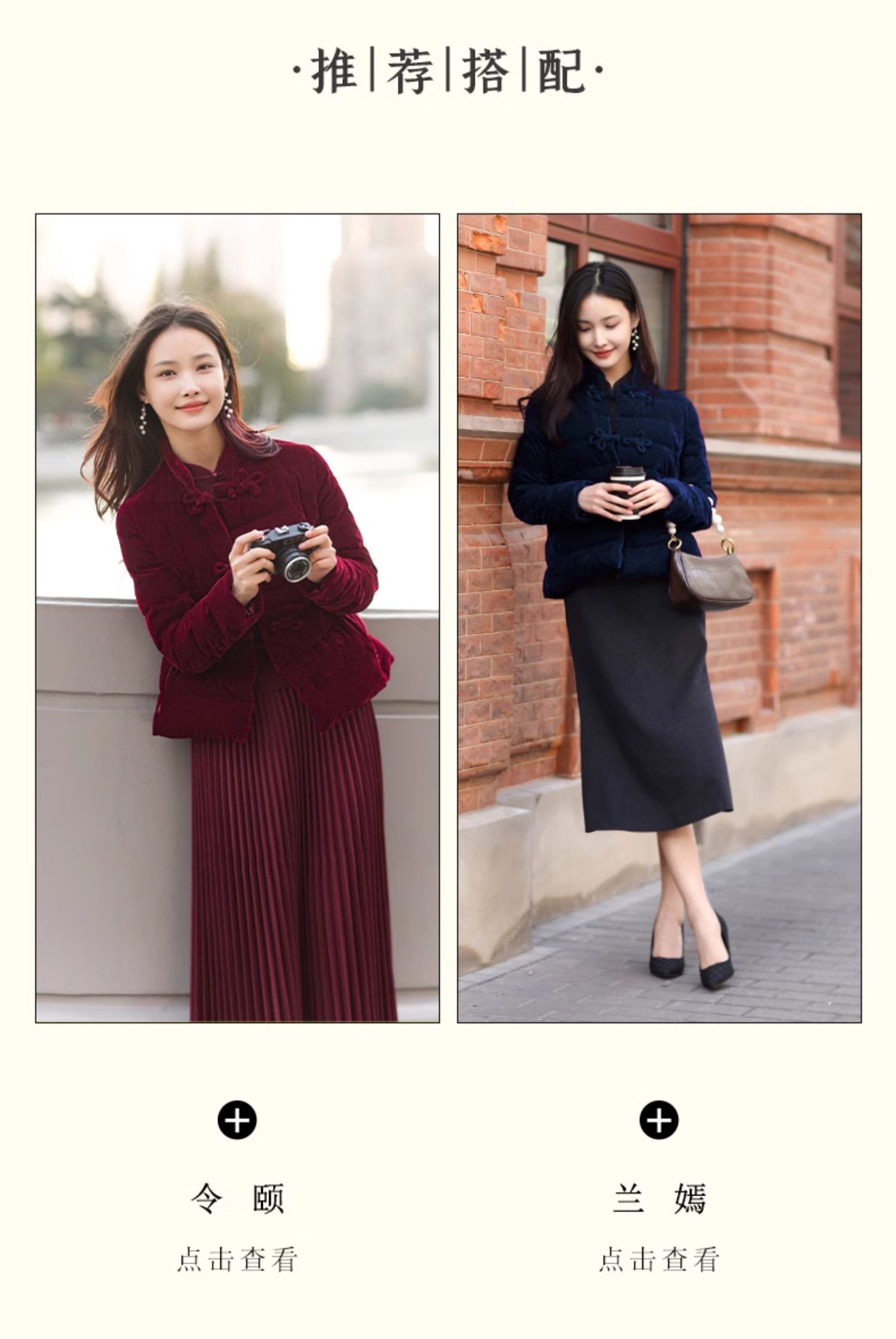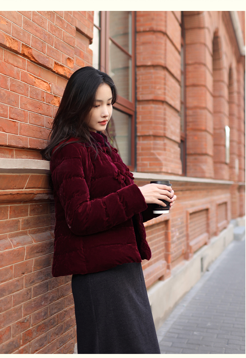 上海逸红颜 虹羽 2025年秋冬新款 古法手工盘扣白鸭绒丝绒羽绒服