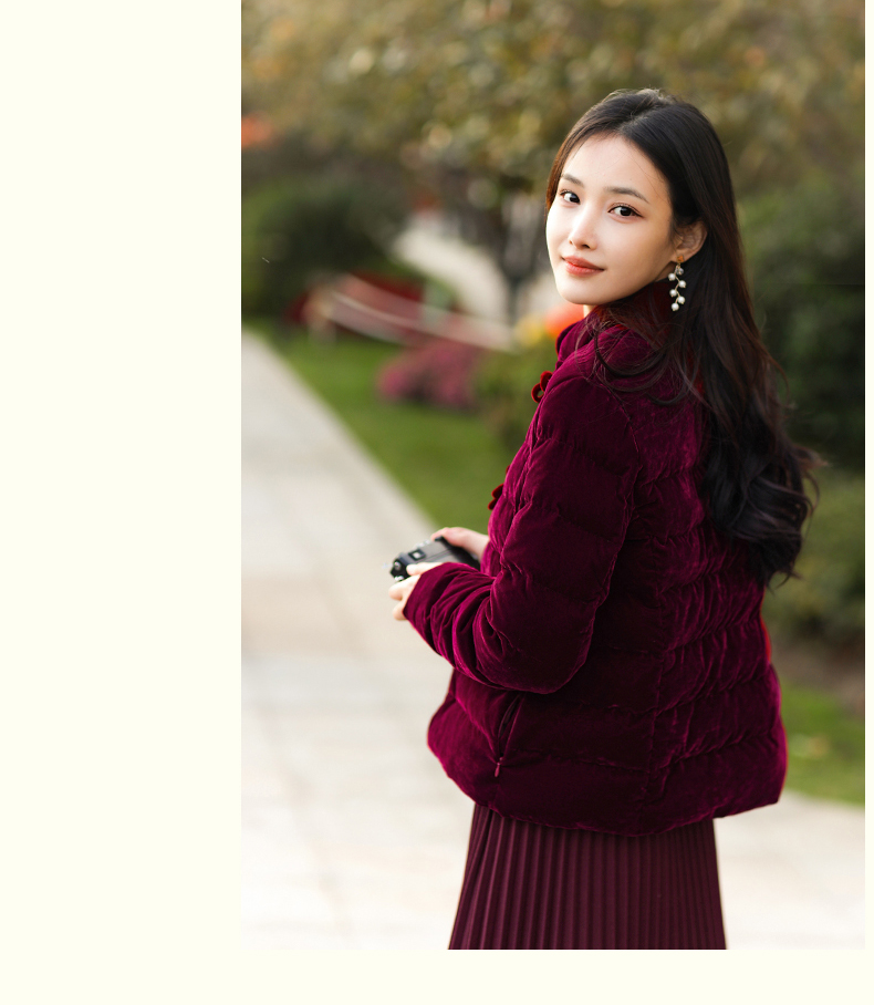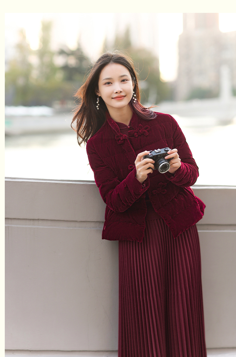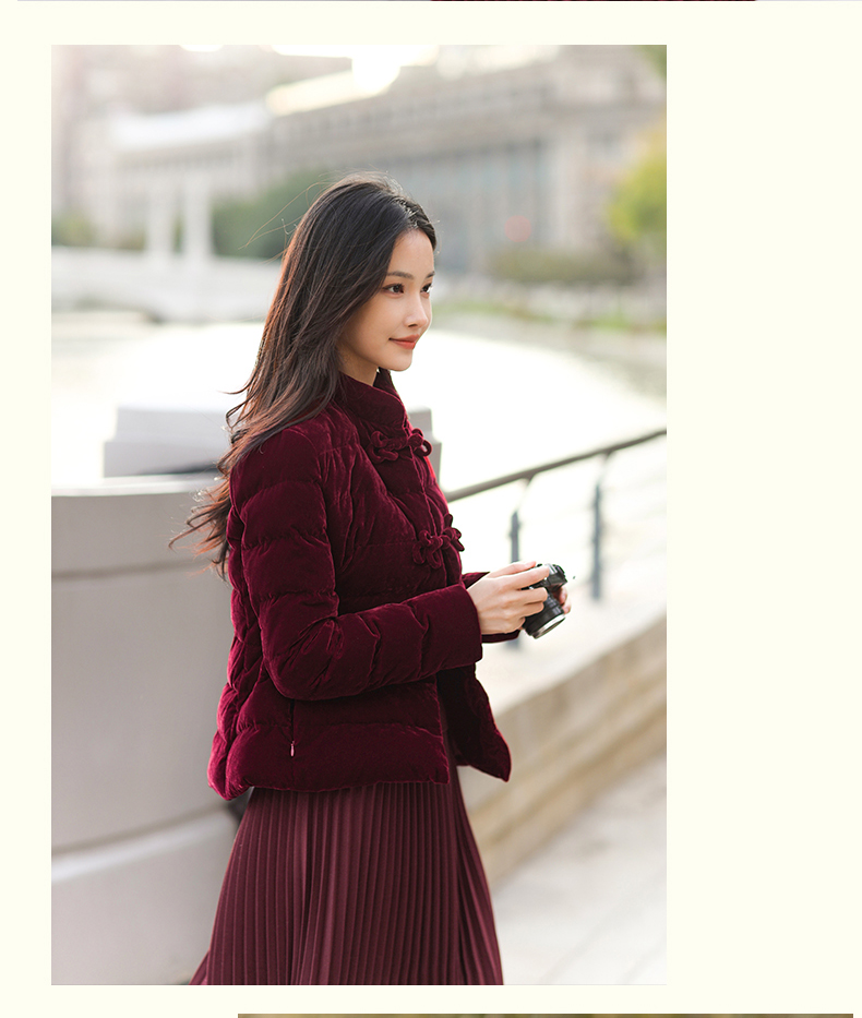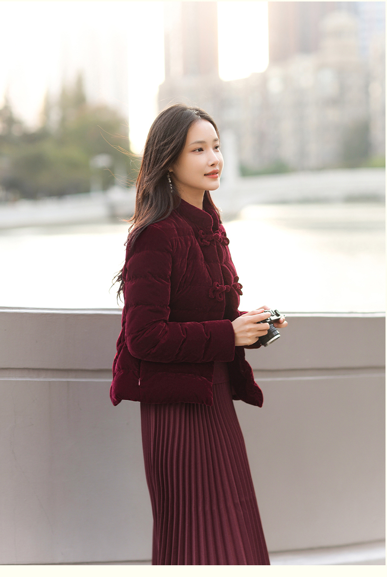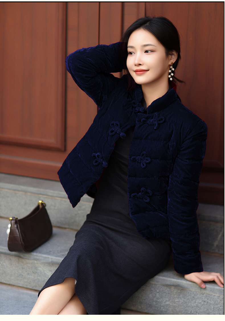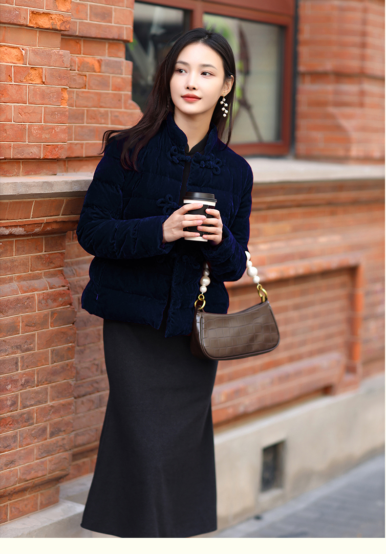 上海逸红颜 虹羽 2025年秋冬新款 古法手工盘扣白鸭绒丝绒羽绒服