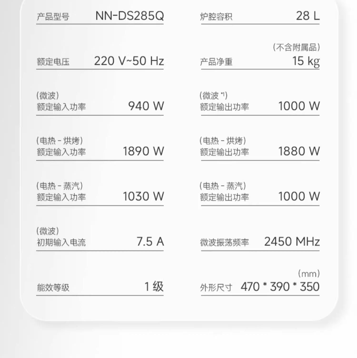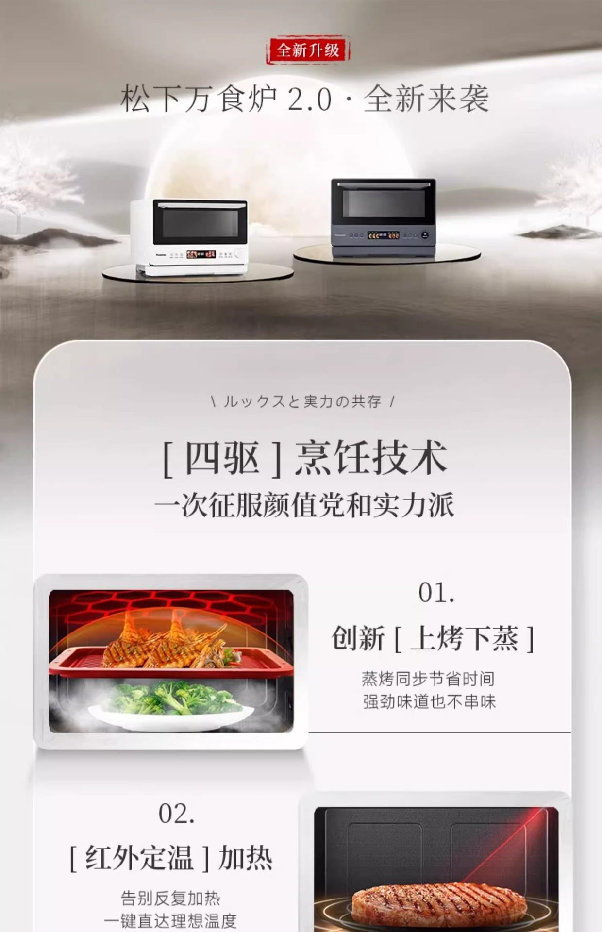 松下DS285 新品万食炉 微蒸烤炸炖一体机 台嵌两用家用烤箱28L