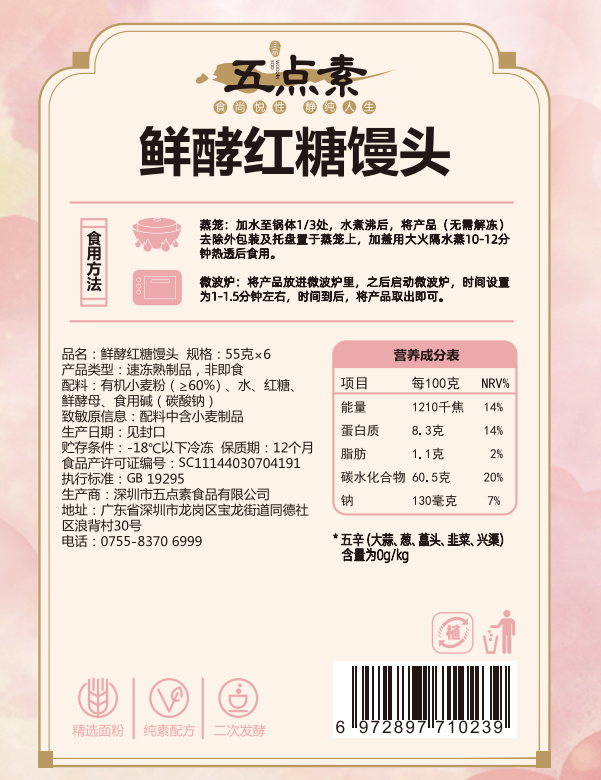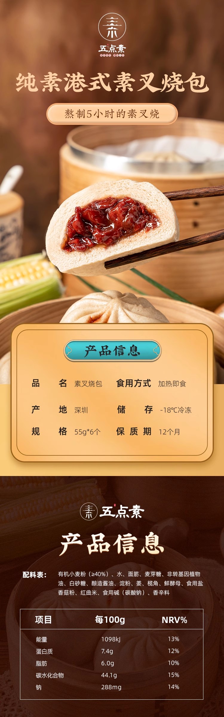五点素纯素包子馒头花卷 小笼包 叉烧包 有机面粉手工制作