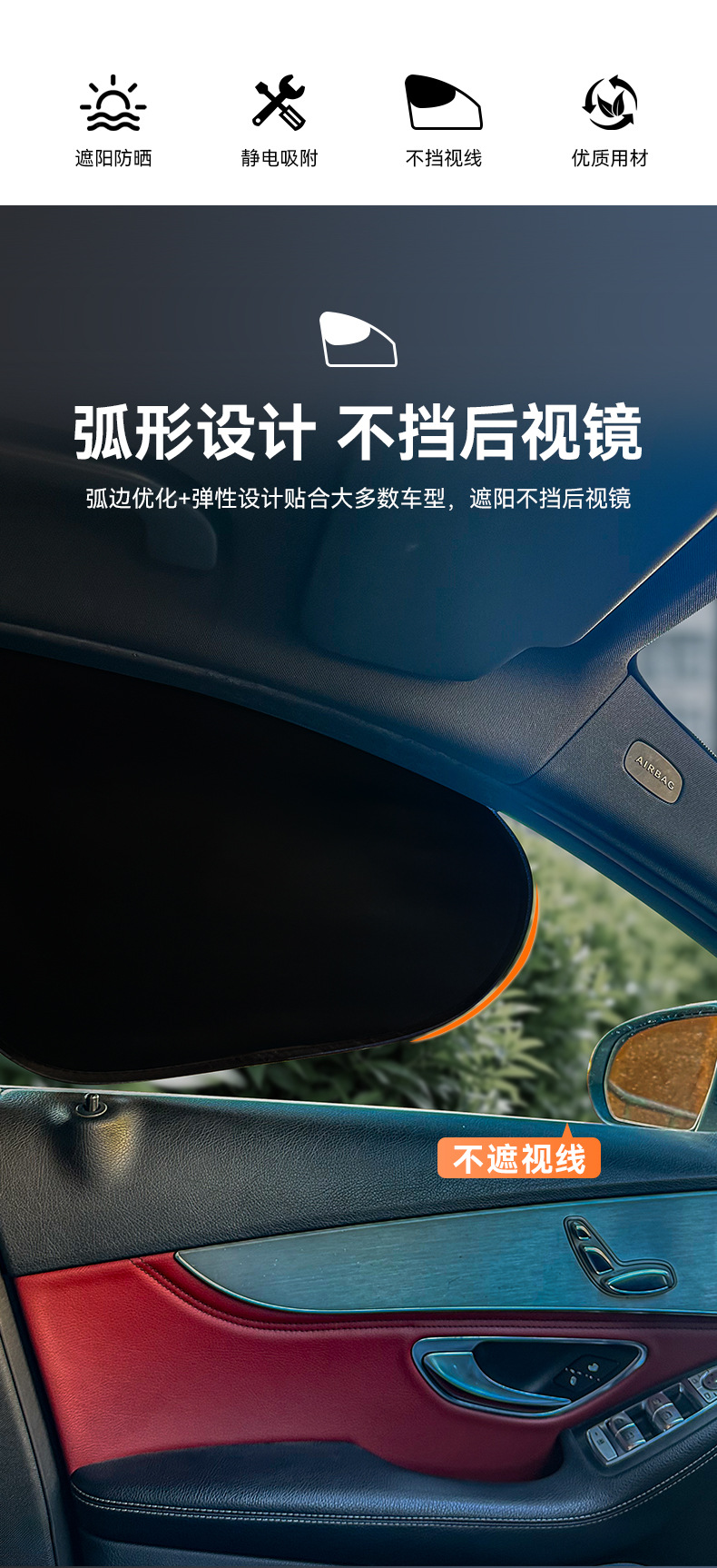 汽车黑胶静电膜窗帘遮阳挡 隐私帘夏季防晒隔热遮阳挡 静电吸附开车可用