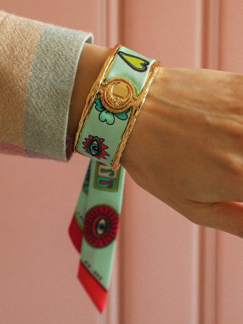 订购14周到|AN-NEE-LUNE-薄荷绿 幸运予你 2cm 丝巾手镯[法国设计师]