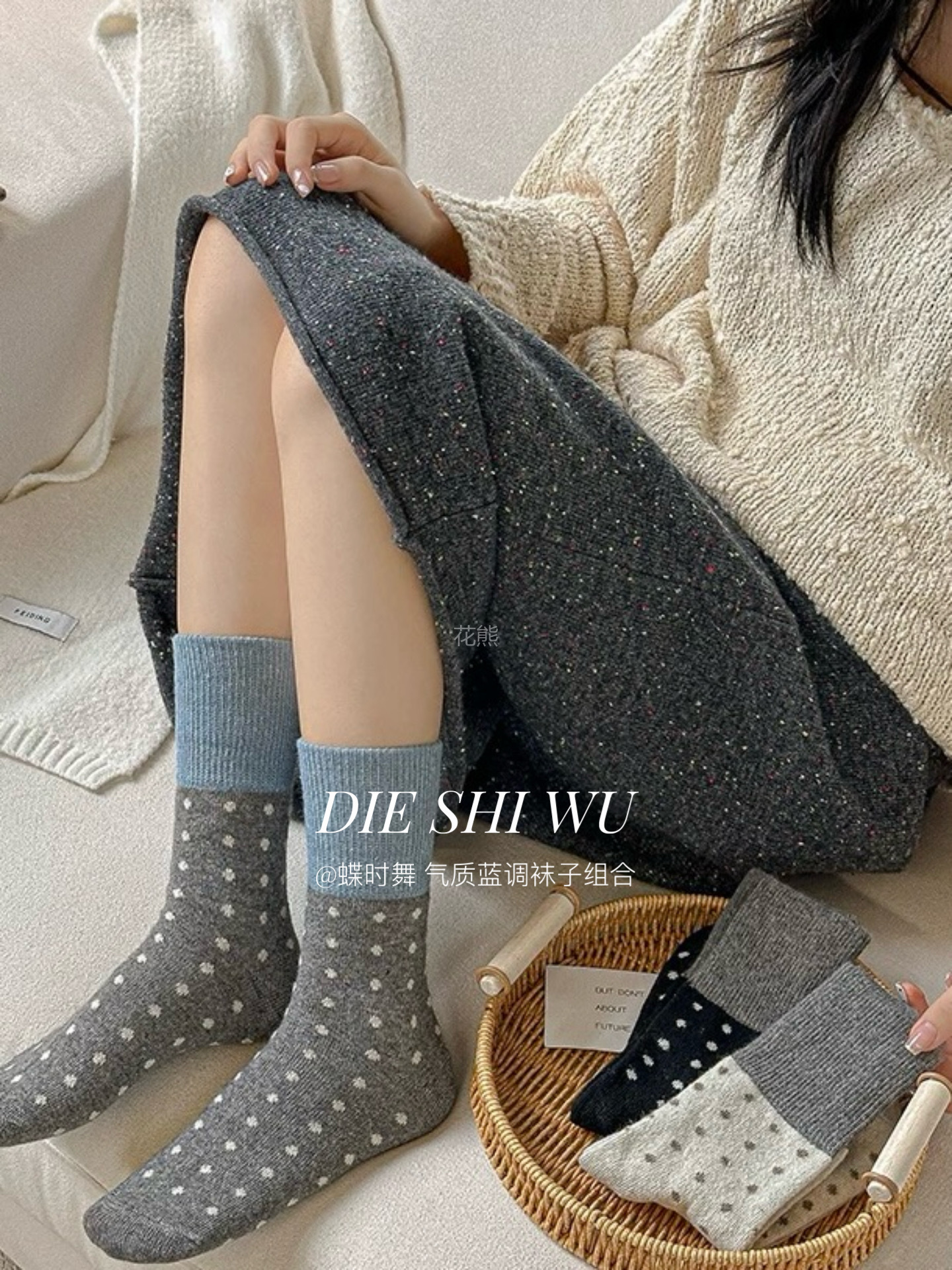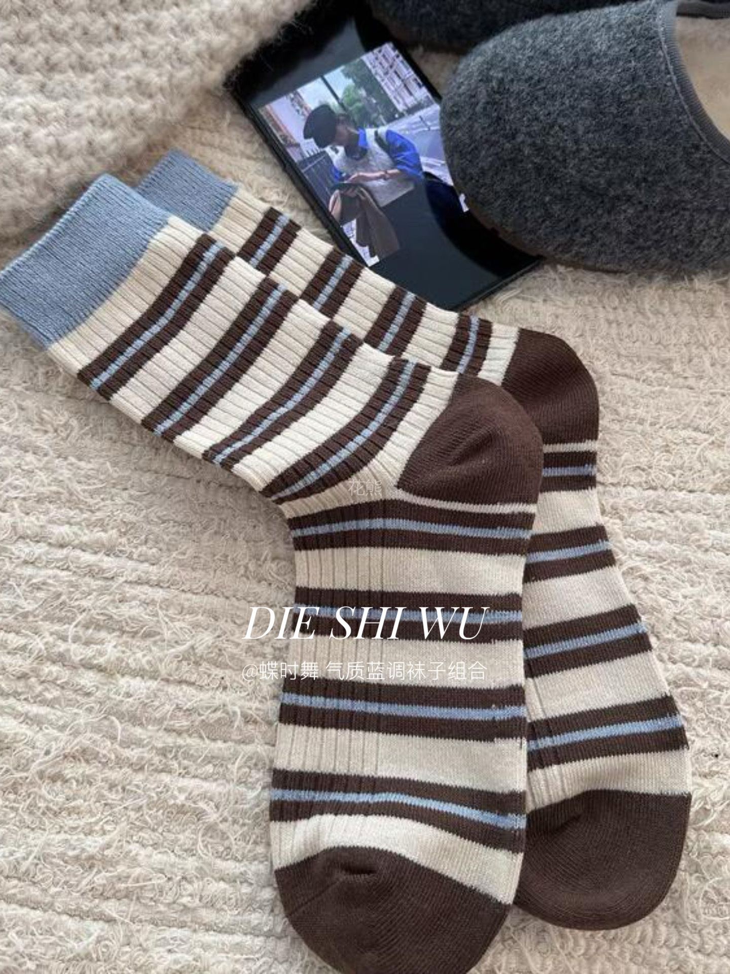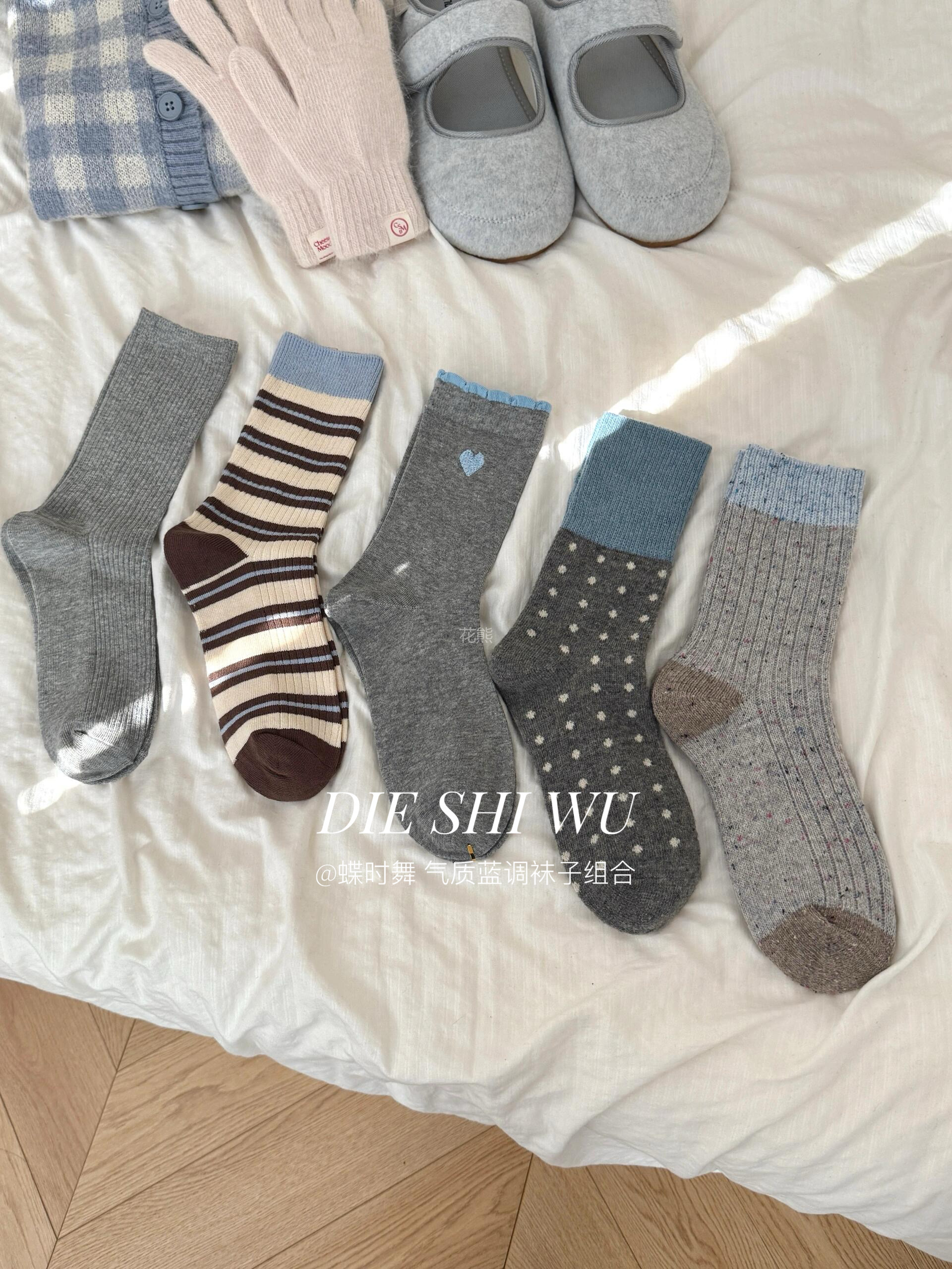 【高级感灰蓝配色的袜子】超级有氛围感,加厚款,秋冬穿太适合啦!!气质百搭~每天都能感受不同的快乐