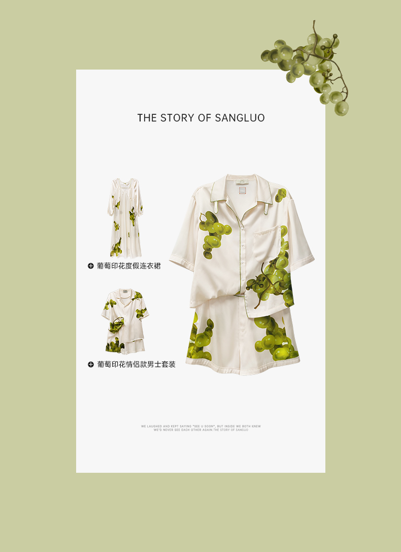 桑罗葡萄系列睡衣女士短套装25年春夏新品可外穿家居服情侣款