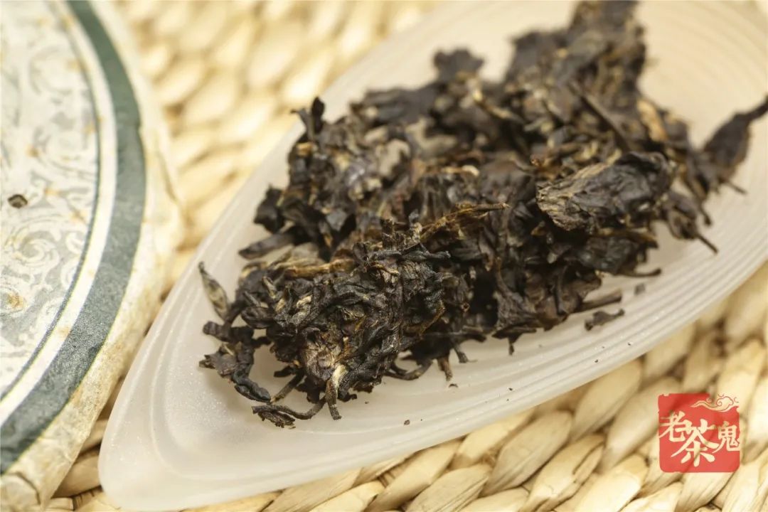 茶饼外形平滑,厚薄均匀,松紧适度,饼面芽叶清晰可见,条索紧结,色泽乌褐油润,尽显大叶种的质朴风格。