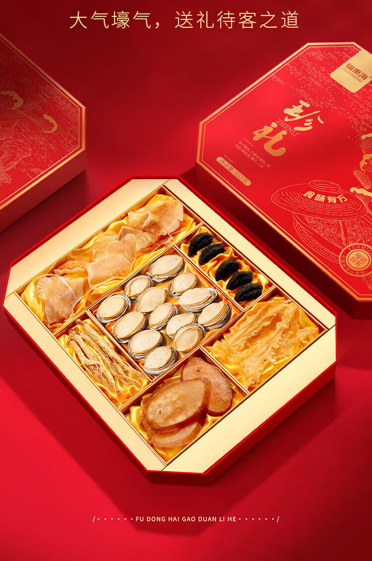 福东海人参海参鲍鱼鱼胶六拼礼盒516克 升级品质 礼品送长辈朋友