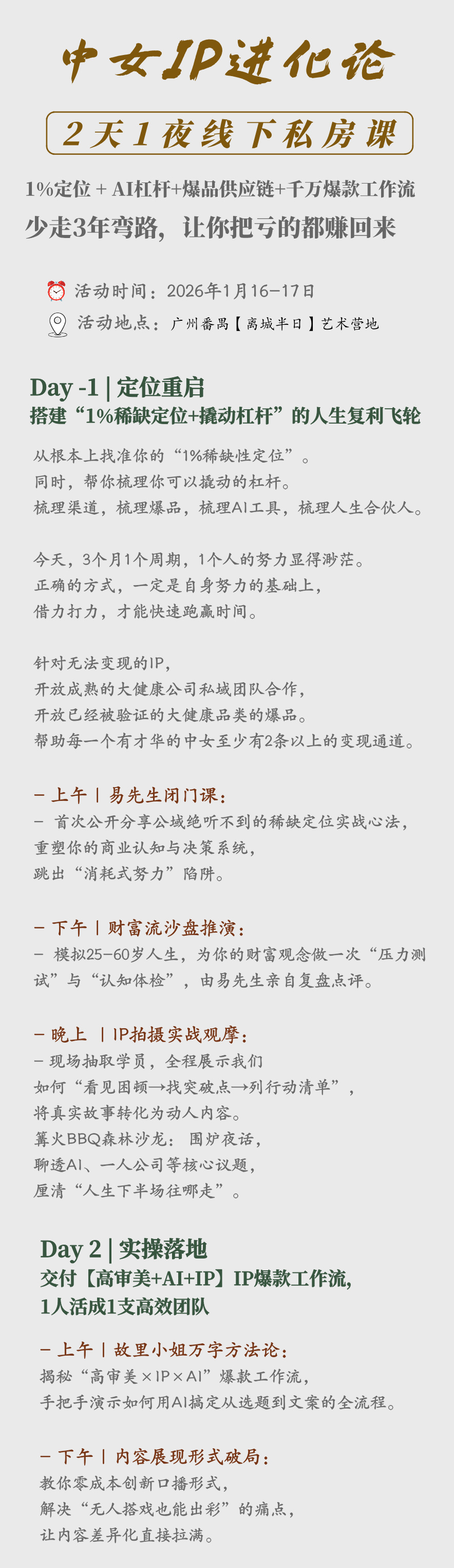 中女IP进化论 |17-18日 2天1夜线下+30天千万爆款修缘AI线上集训营