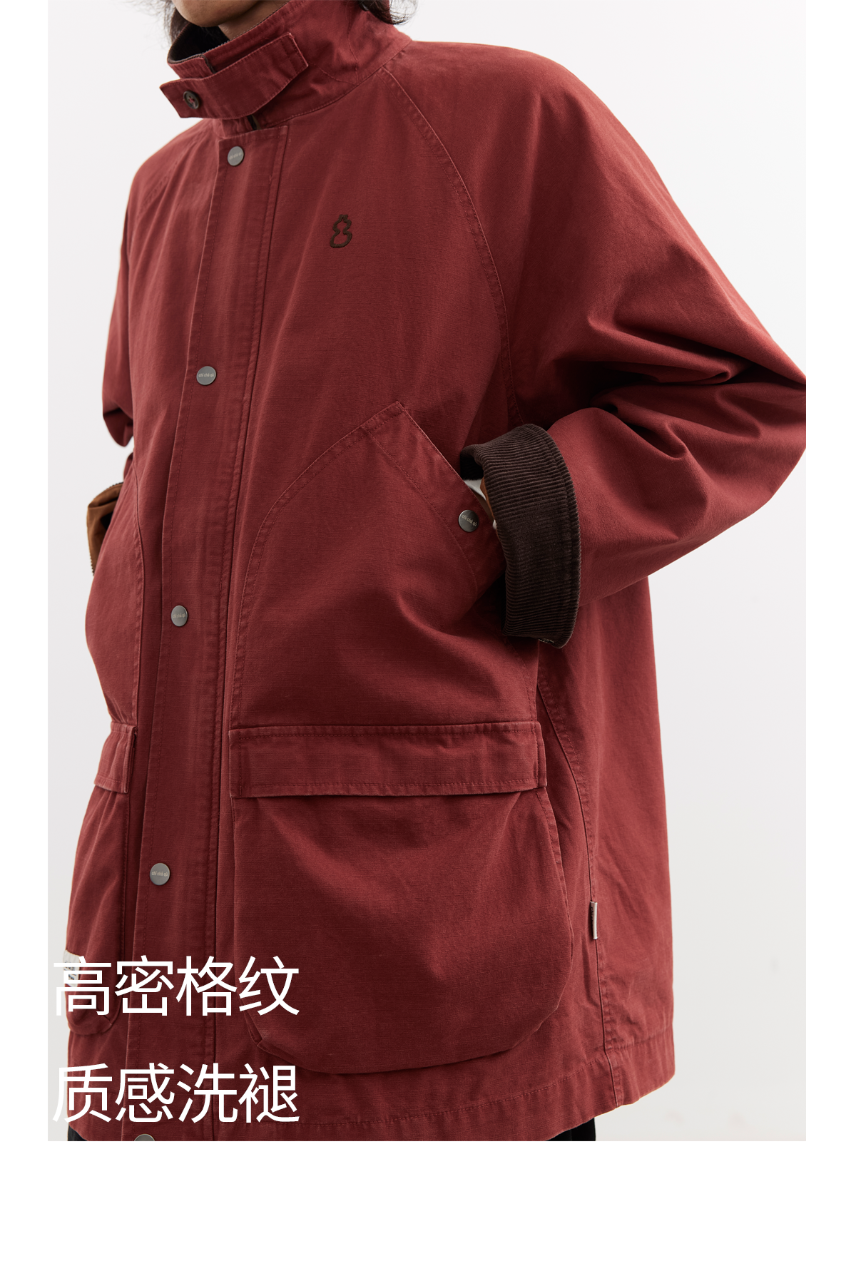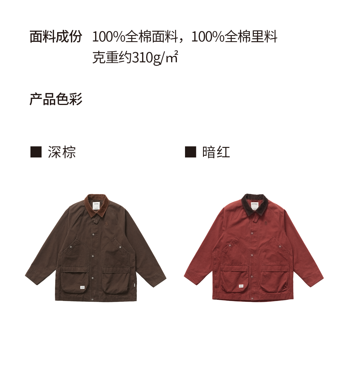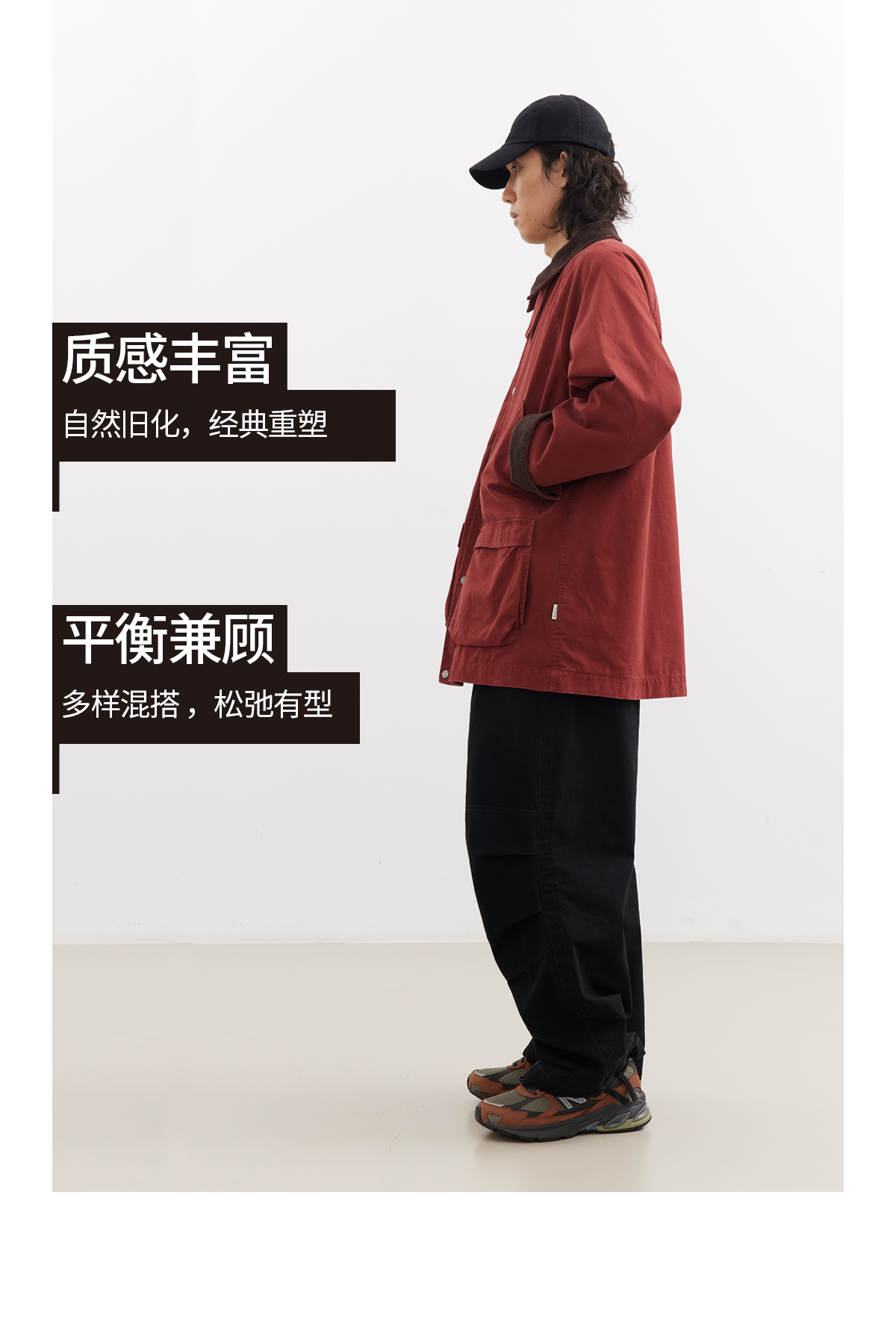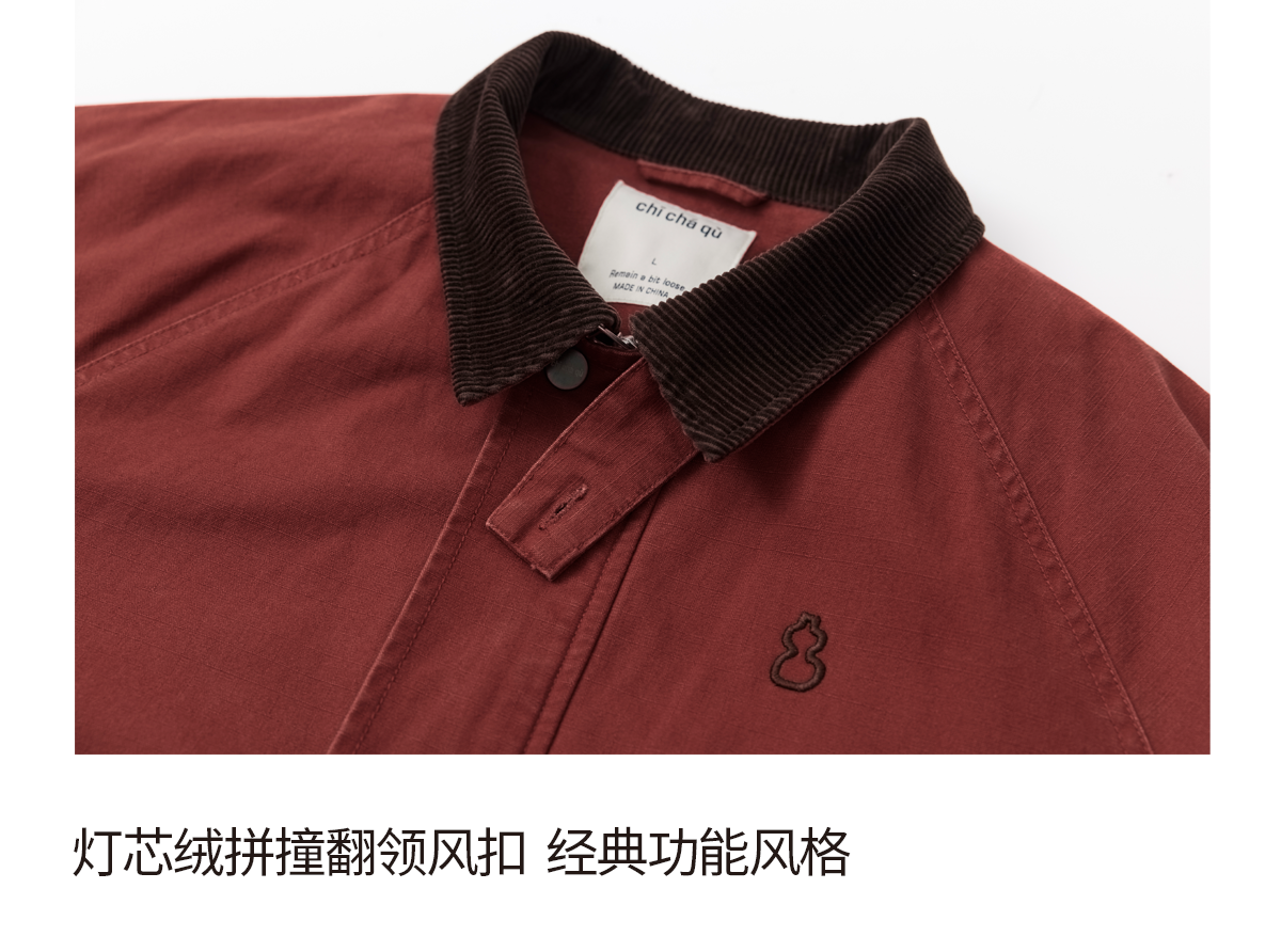 吃茶去chichaqu25全棉洗水做旧翻领夹克宽松复古猎装谷仓工装男女