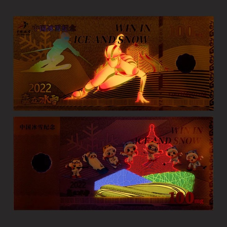 中国冰雪金银券融印钞文化、冬奥文化、生肖文化于一体,彰显大国底蕴。