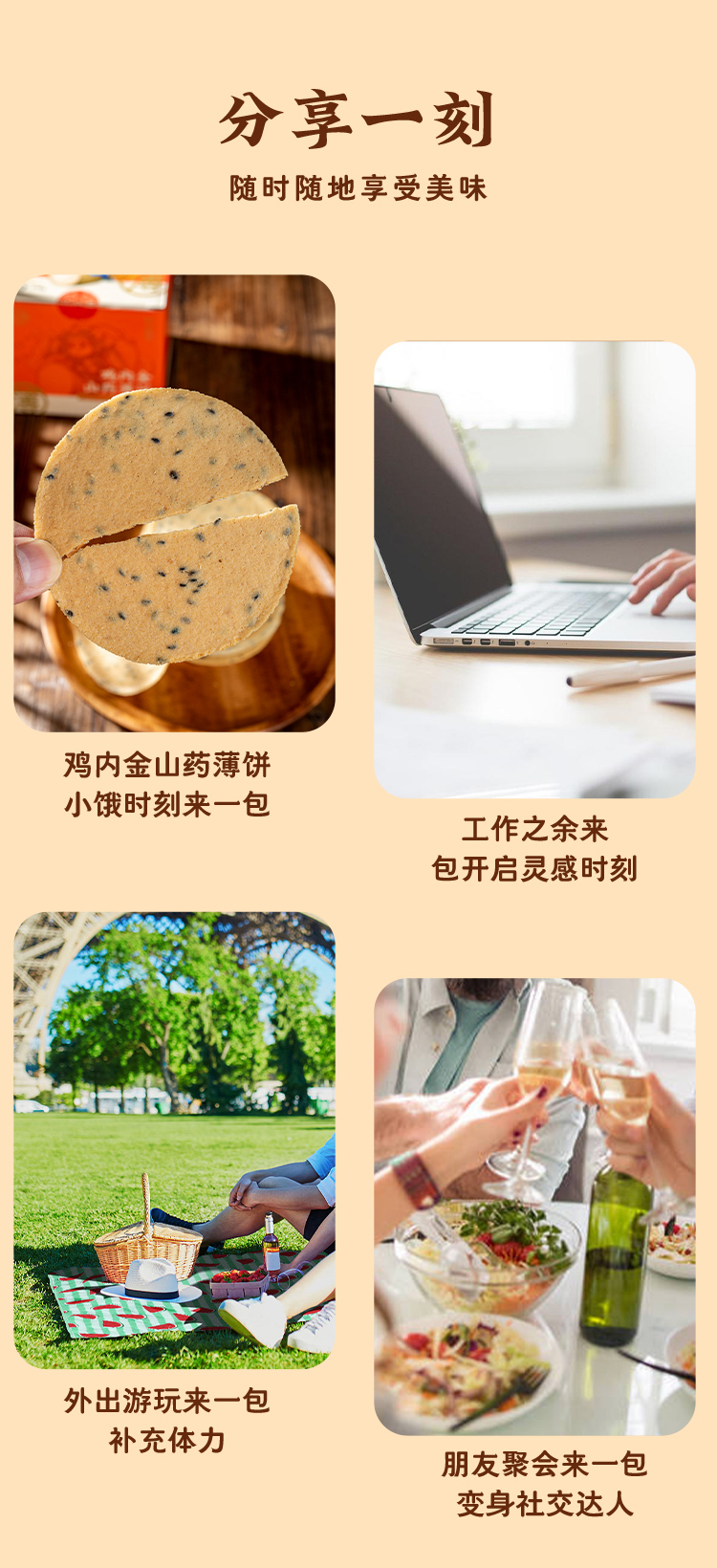 【配料表】鲜铁棍山药(含量≥60%)全麦粉,鸡内金3%,黑芝麻,大豆油,食用盐。
