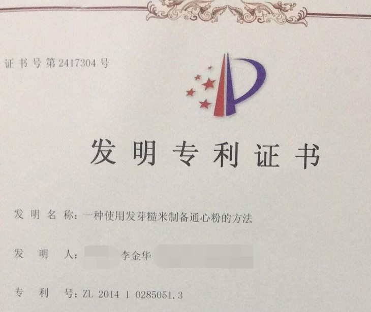 李金华的两项发明专利“茶油米粉”与“发芽糙米米粉”