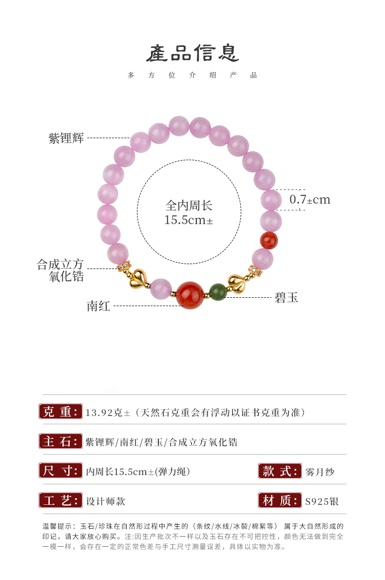 雾月纱 紫锂辉转运手串