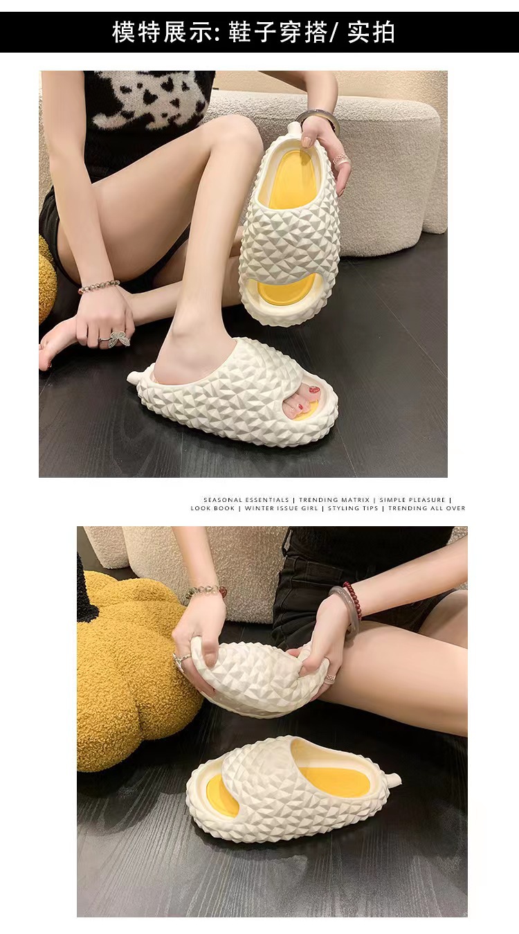 【踩屎感❗️搞怪榴莲拖鞋】舒适柔软,女夏季榴莲情侣居家防滑拖鞋男网红个性时尚外穿凉拖父亲节礼物新年礼盒年货礼盒