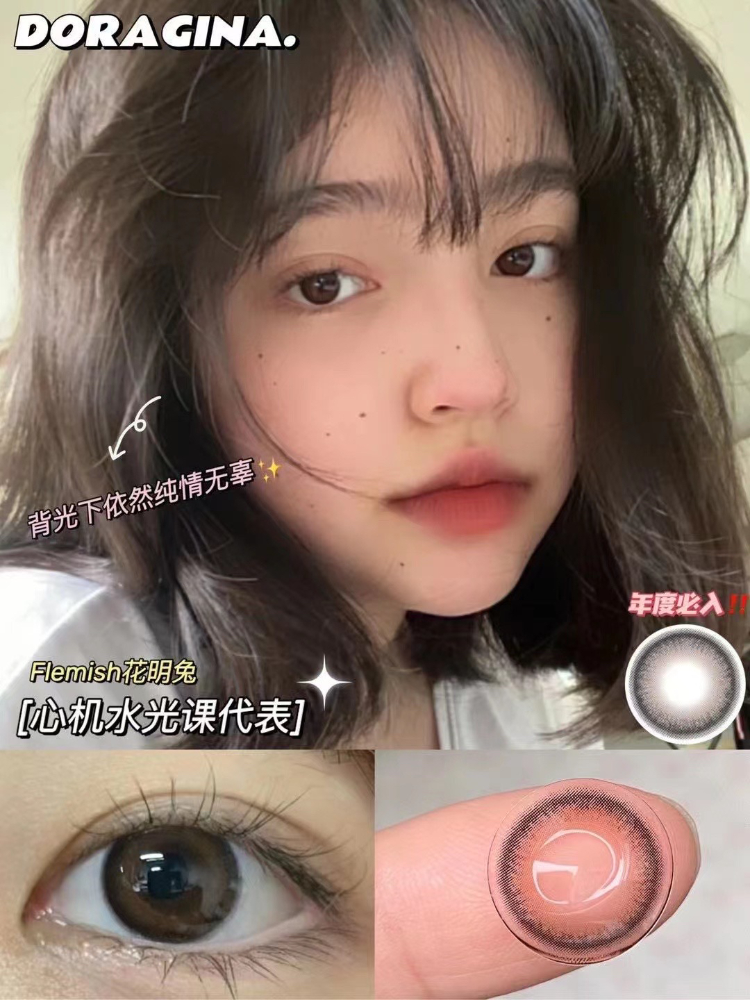 Doragina花明兔 自然款伪素颜必备 拍手叫绝的无辜感 14.2/年抛/硅水凝胶材质