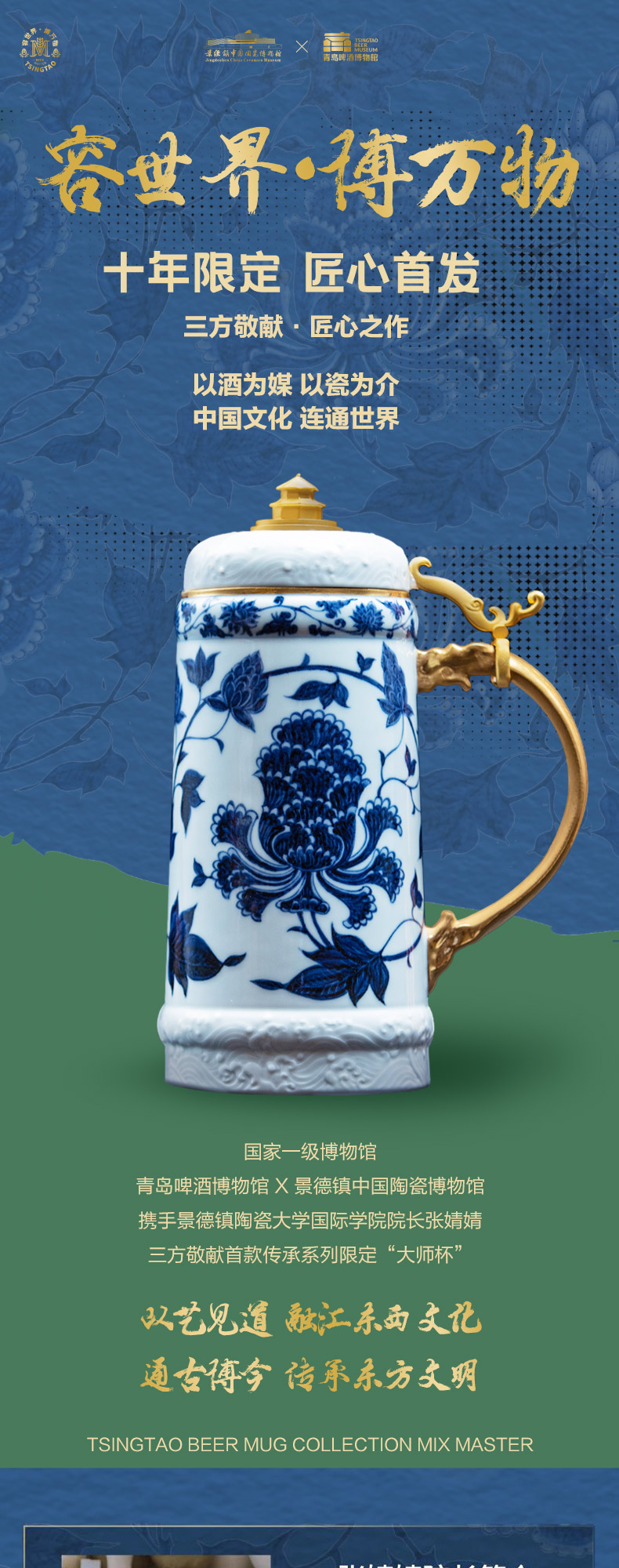 【青岛啤酒博物馆】十年限定传承景德镇中国陶瓷博物馆联名“青花洄澜大师杯”