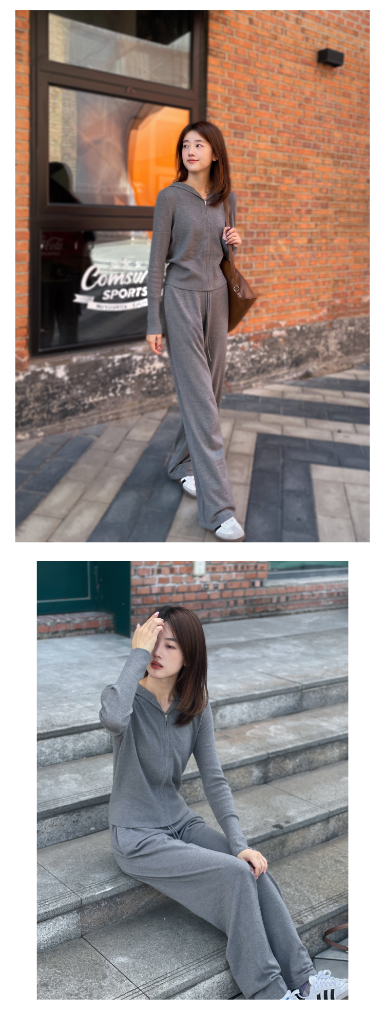24AW 37.5精纺羊绒火山灰连帽拉链套装