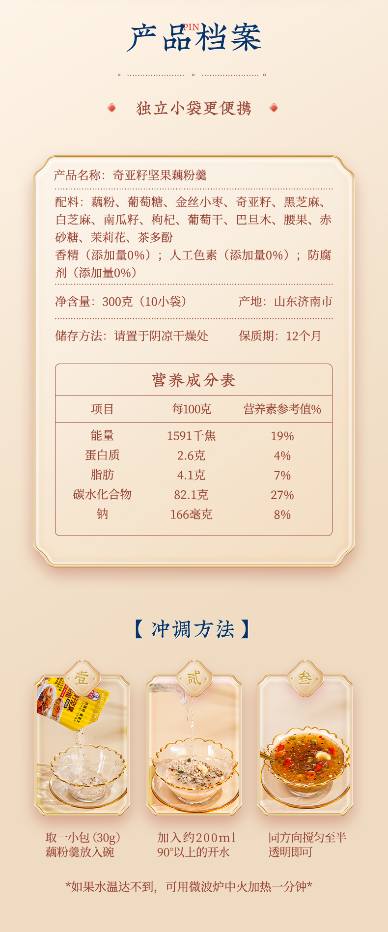 【商超同款】秦老太奇亚籽坚果藕粉羹300g添加茉莉花茶(内含10袋)