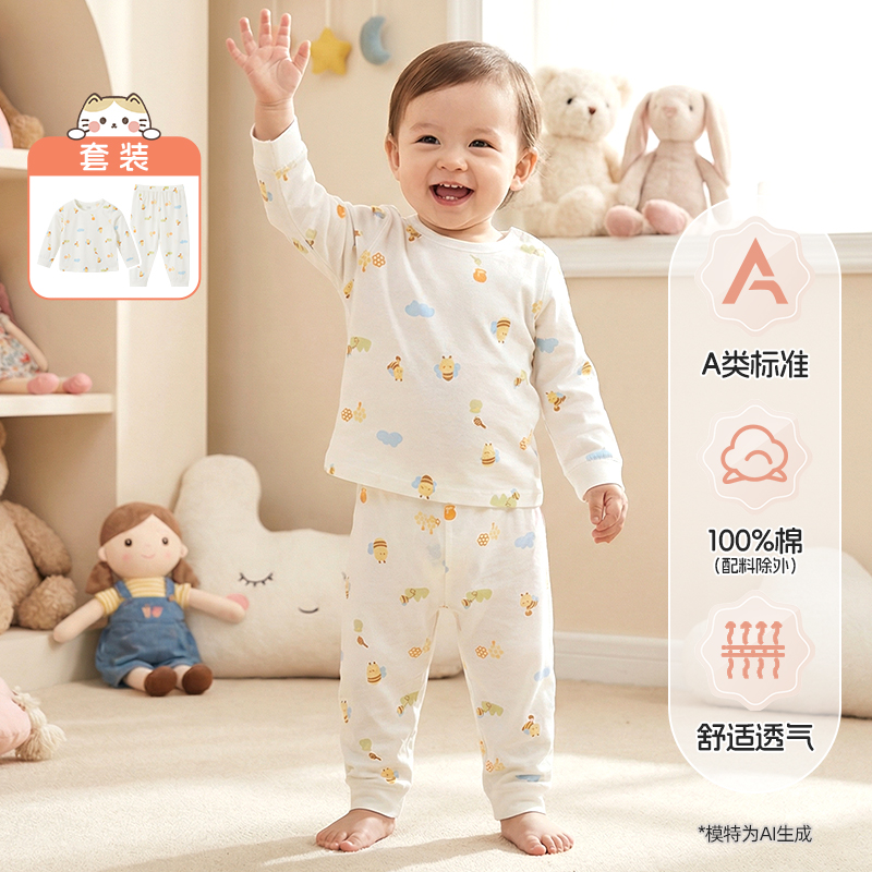 怡比萌蜂采蜜长袖圆领套装HY26SUN223白黄色调80#-140#