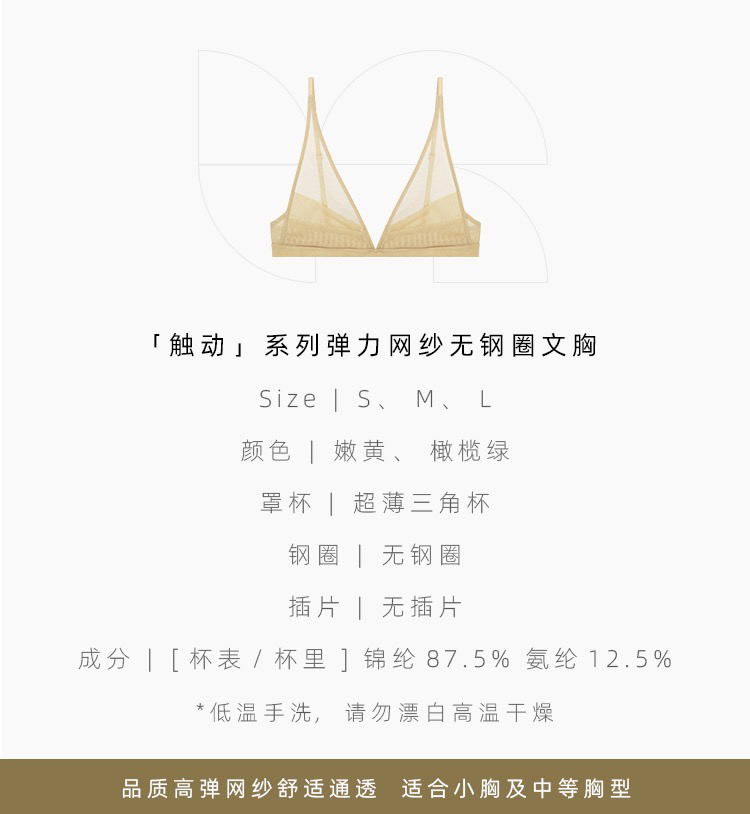 Her Senses|触动 04-B040-NN 弹⼒⽹纱 全罩杯 [ 橄榄绿 / 嫩黄 ]