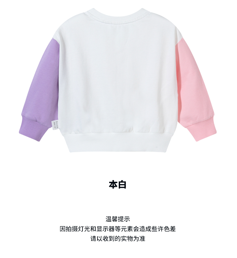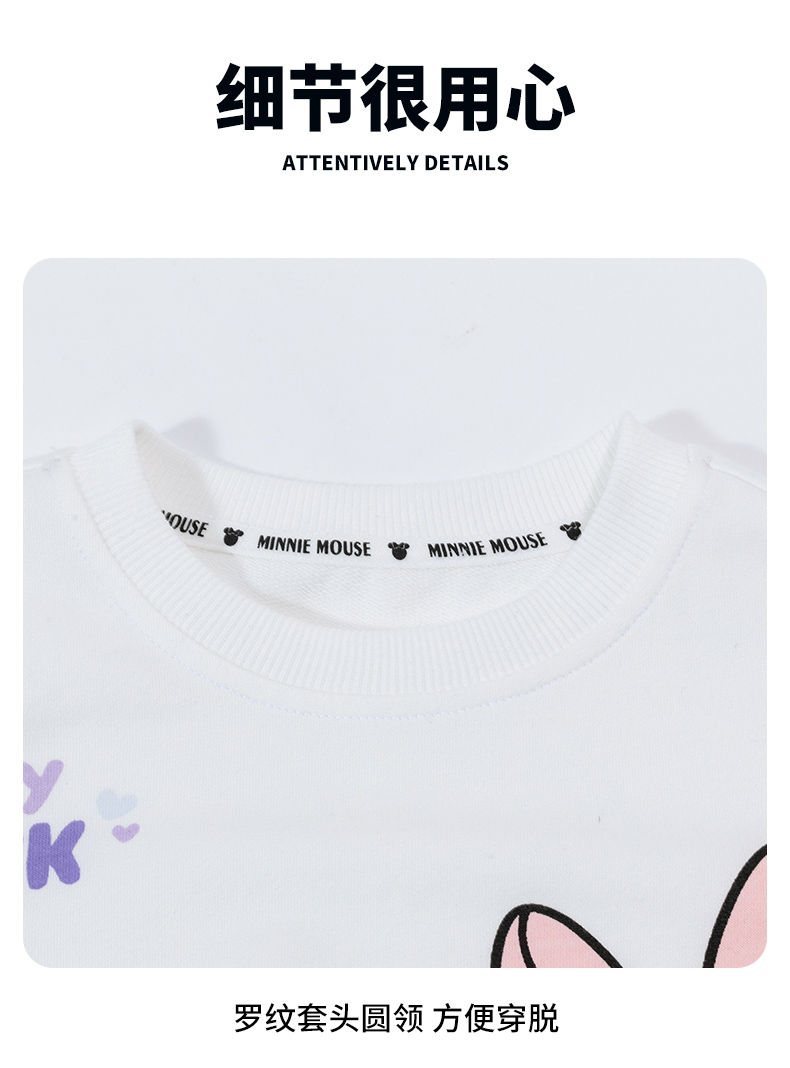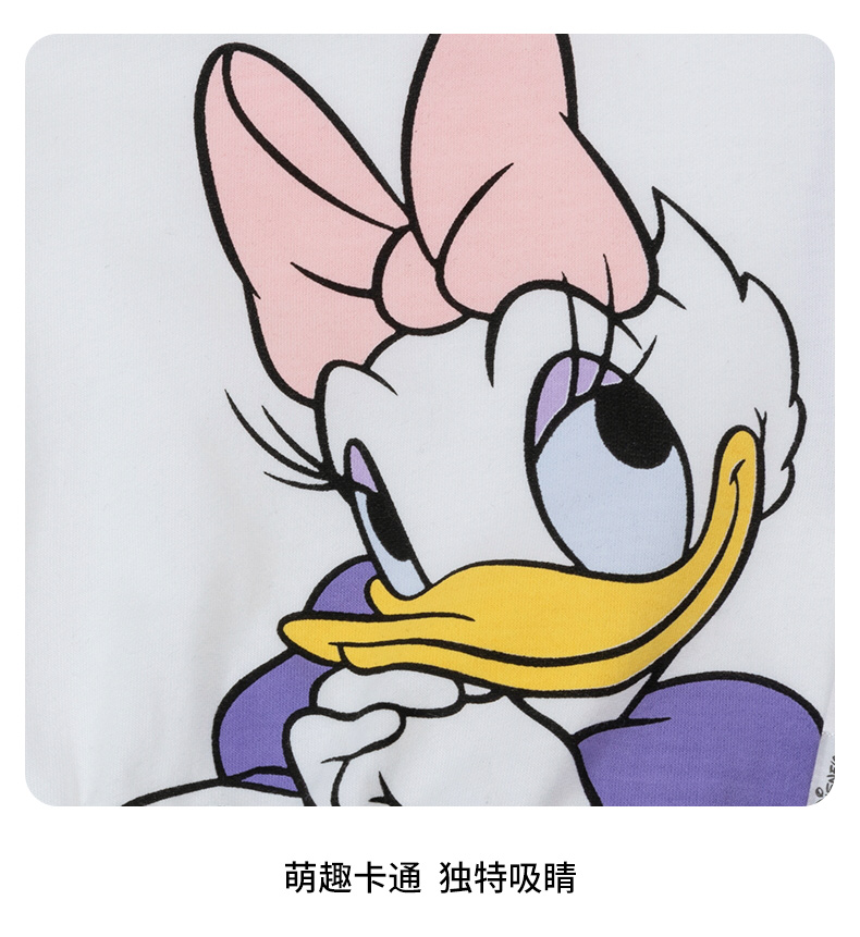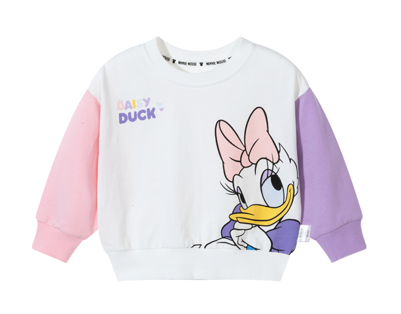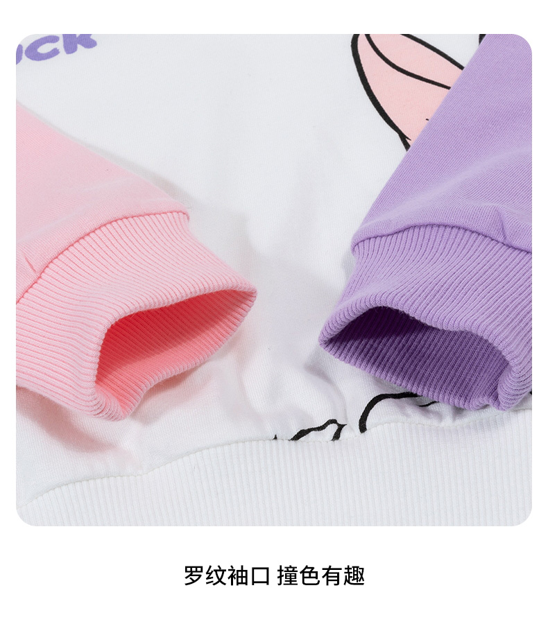 迪士尼女童卫衣春季2024儿童甜美黛西印花拼色袖上衣百搭纯棉套头衫ZD1DS004